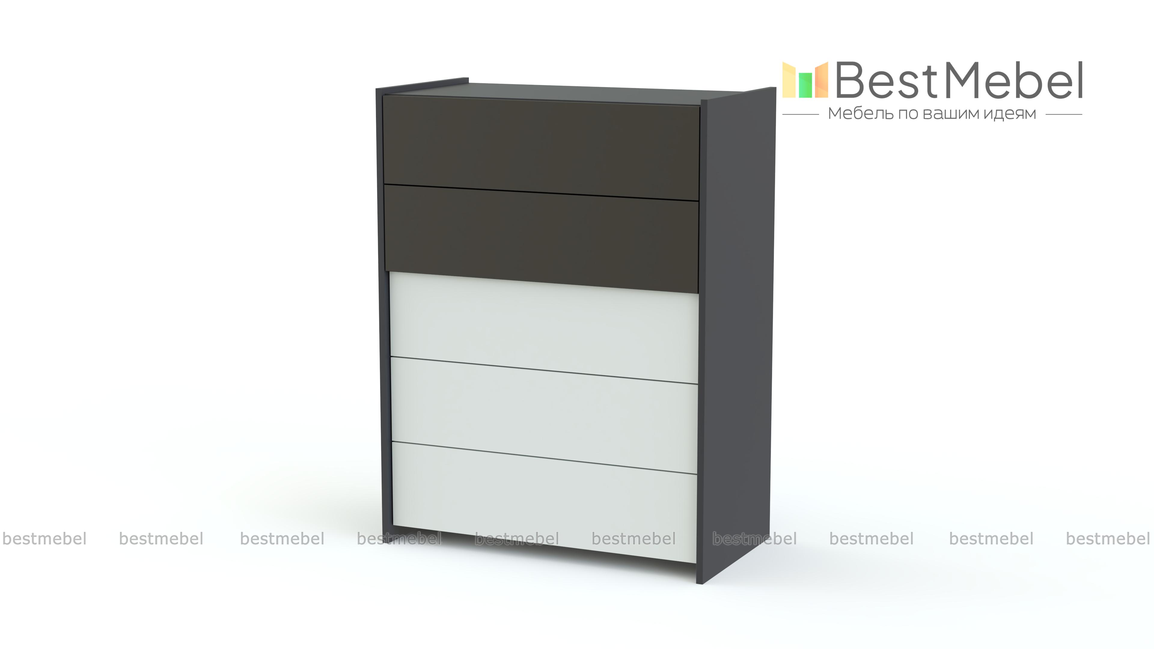 Комод МБ 65.1 BMS – высокая модель, которая будет гармонично смотреться в любом из помещений дома – спальне, гостиной, прихожей или молодежной комнате. Комод отличается лаконичным современным дизайном и оборудован пятью выдвижными ящиками для белья и одежды и просторной столешницей для мелочей. Оптимальный оттенок для матовых фасадов вы сможете подобрать самостоятельно. Купить комод МБ 65.1 BMS для эффектных интерьеров в стиле минимализм приглашаем в наш интернет-магазин.