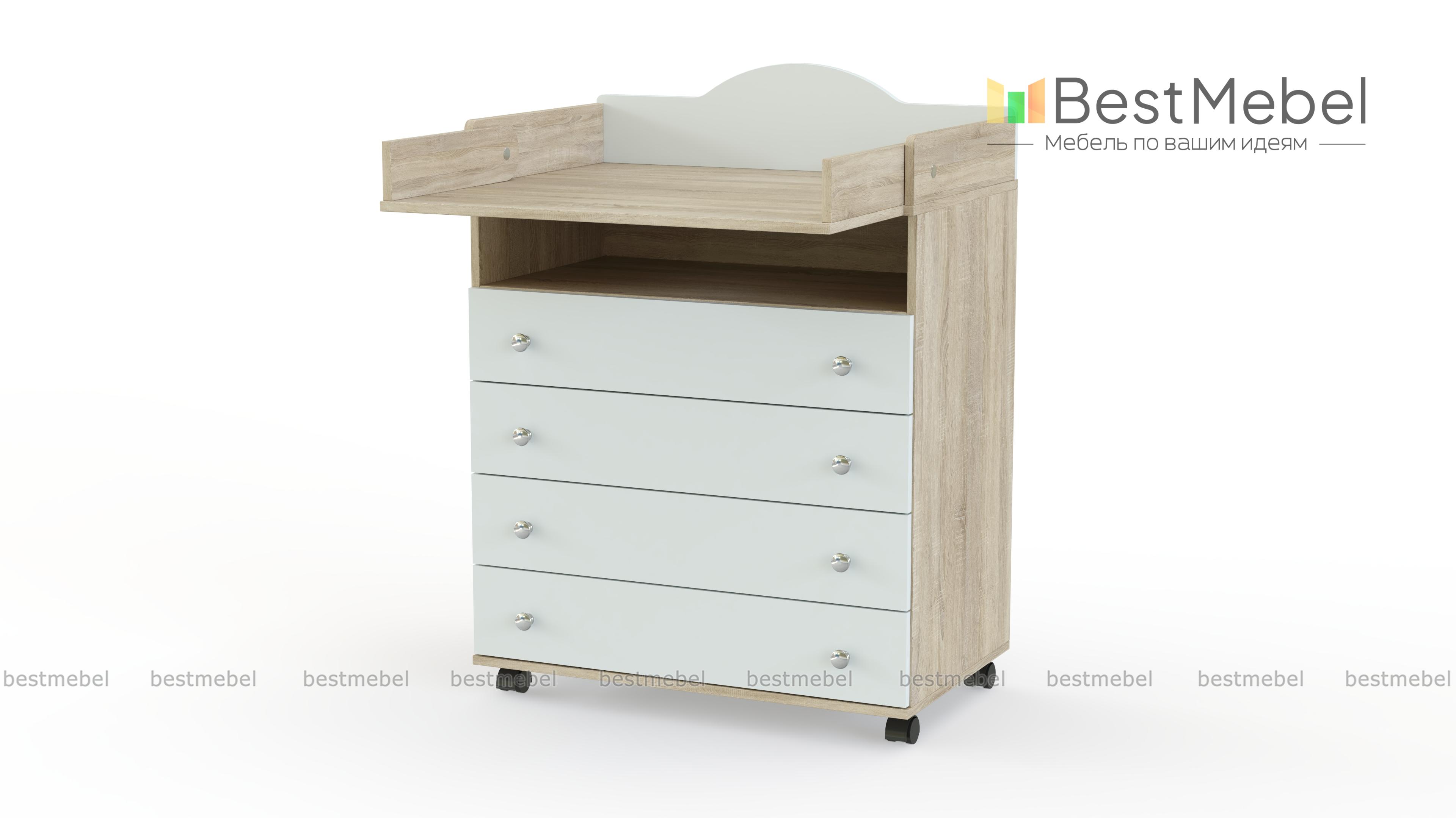 Комод пеленальный Умка Нео 3 BMS вы сможете без труда перемещать по комнате благодаря колесикам. Для удобного хранения вещей ребенка и уходовых средств модель оборудована четырьмя выдвижными ящиками с парными ручками-кнопками и нишей. Бортики и фигурно вырезанная задняя панель не имеют острых углов, а откидной пеленальный столик превращается в полку, когда не используется. Купить комод пеленальный Умка Нео 3 BMS приглашаем в наш интернет-магазин с выбором фурнитуры и цвета по каталогу.