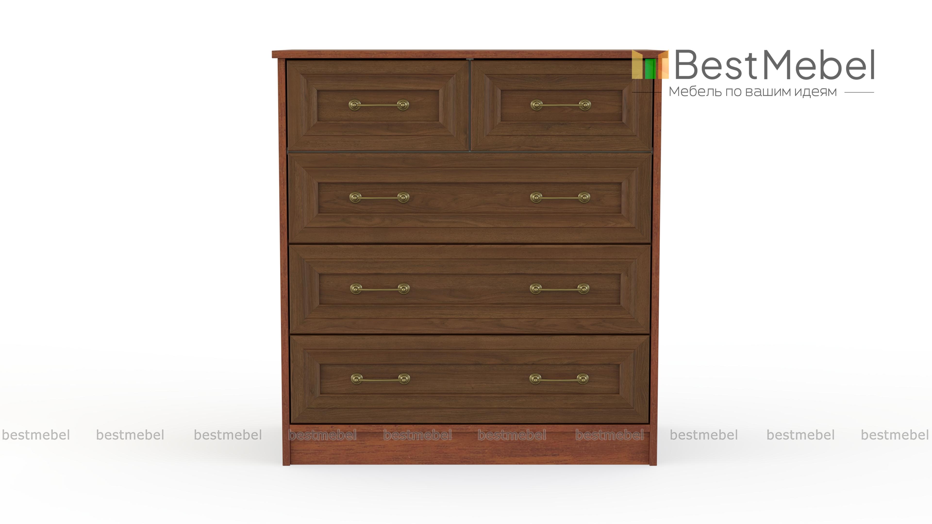 Красивая модель классического комода, изготовленного из современных материалов. Комод Ричард 0, 42 имеет три больших выдвижных ящика для постельного белья, домашних и личных вещей и два маленьких ящика для мелких предметов туалета. Особо привлекательно выглядят оригинальные стильные ручки, а поверхность комода можно декорировать различными предметами или использовать в качестве подставки под аппаратуру. Купить данную модель можно для гостиной, спальни, прихожей.