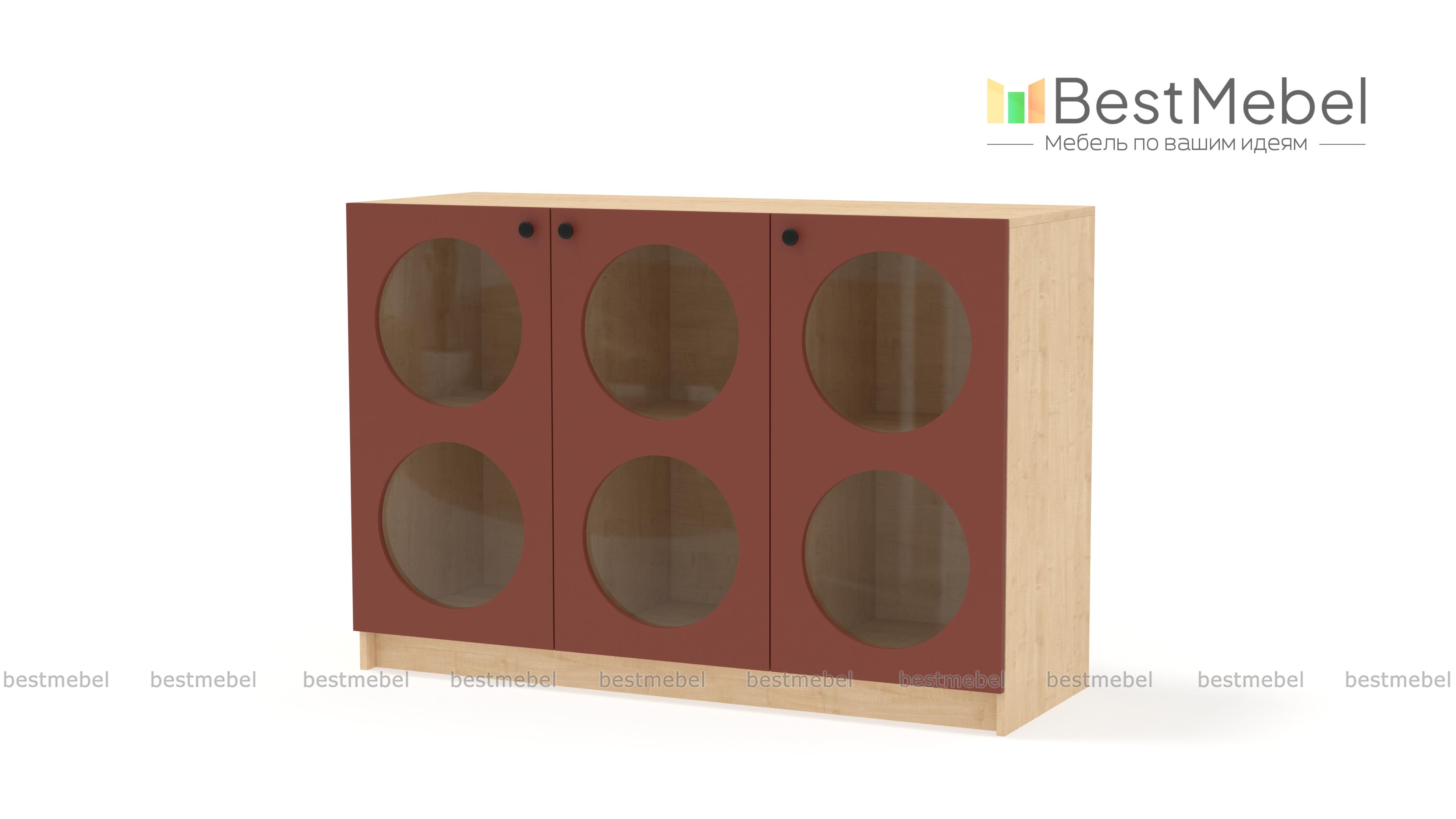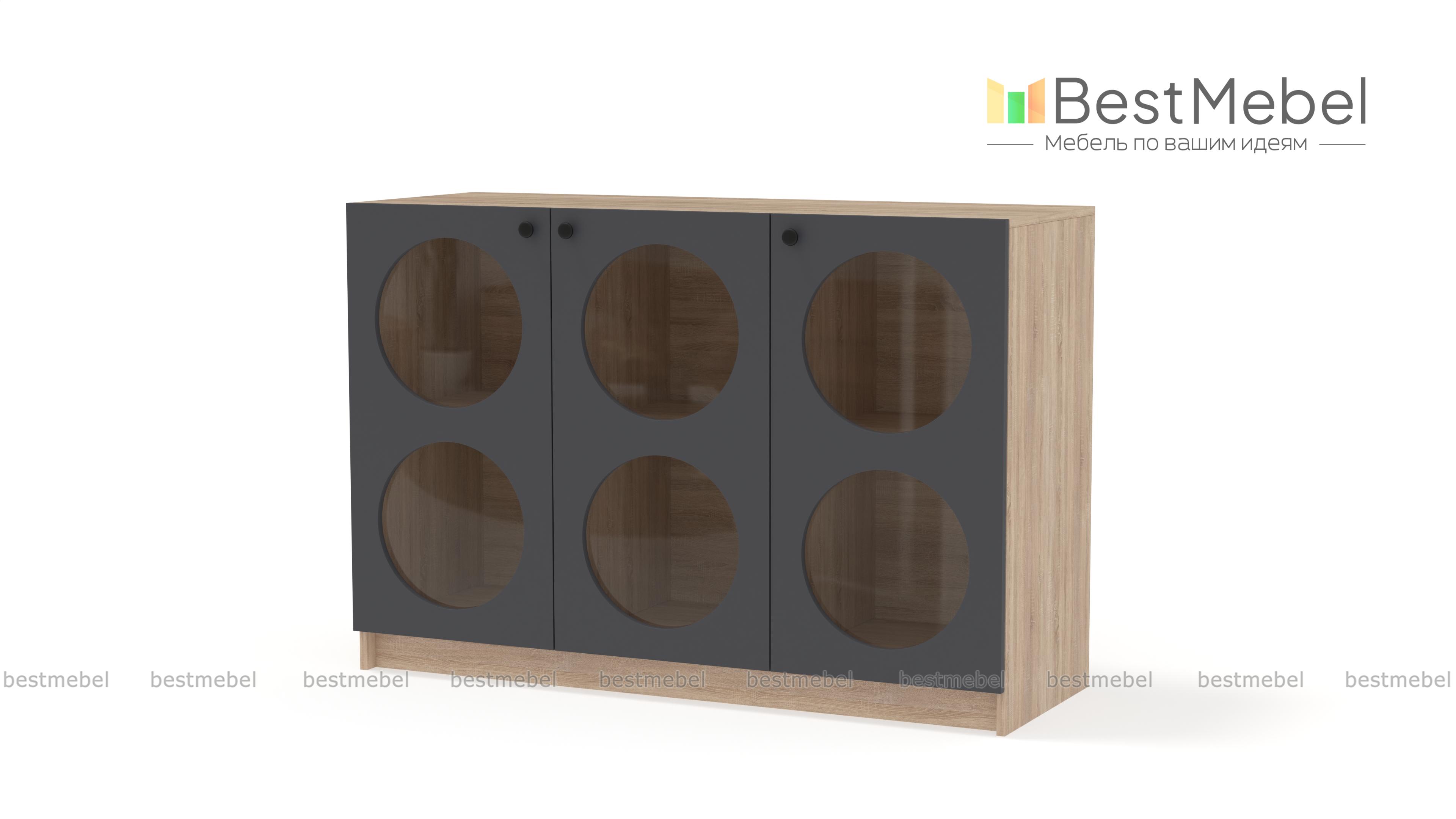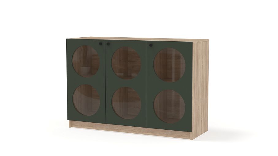 Комод Руди 1 BMS в современном дизайне внесет стильный акцент в интерьер гостиной, спальни или комнаты подростка. Три распашные дверцы имеют круглые вырезы со стеклом, за которым особенно эффектно смотрятся книги, посуда и любимый декор. Внутри комод разделен полками и перегородками на шесть секций, позволяя удобно расположить вещи по категориям. Купить комод Руди 1 BMS с выбором размеров, цвета и фурнитуры вы сможете недорого на сайте нашего интернет-магазина.