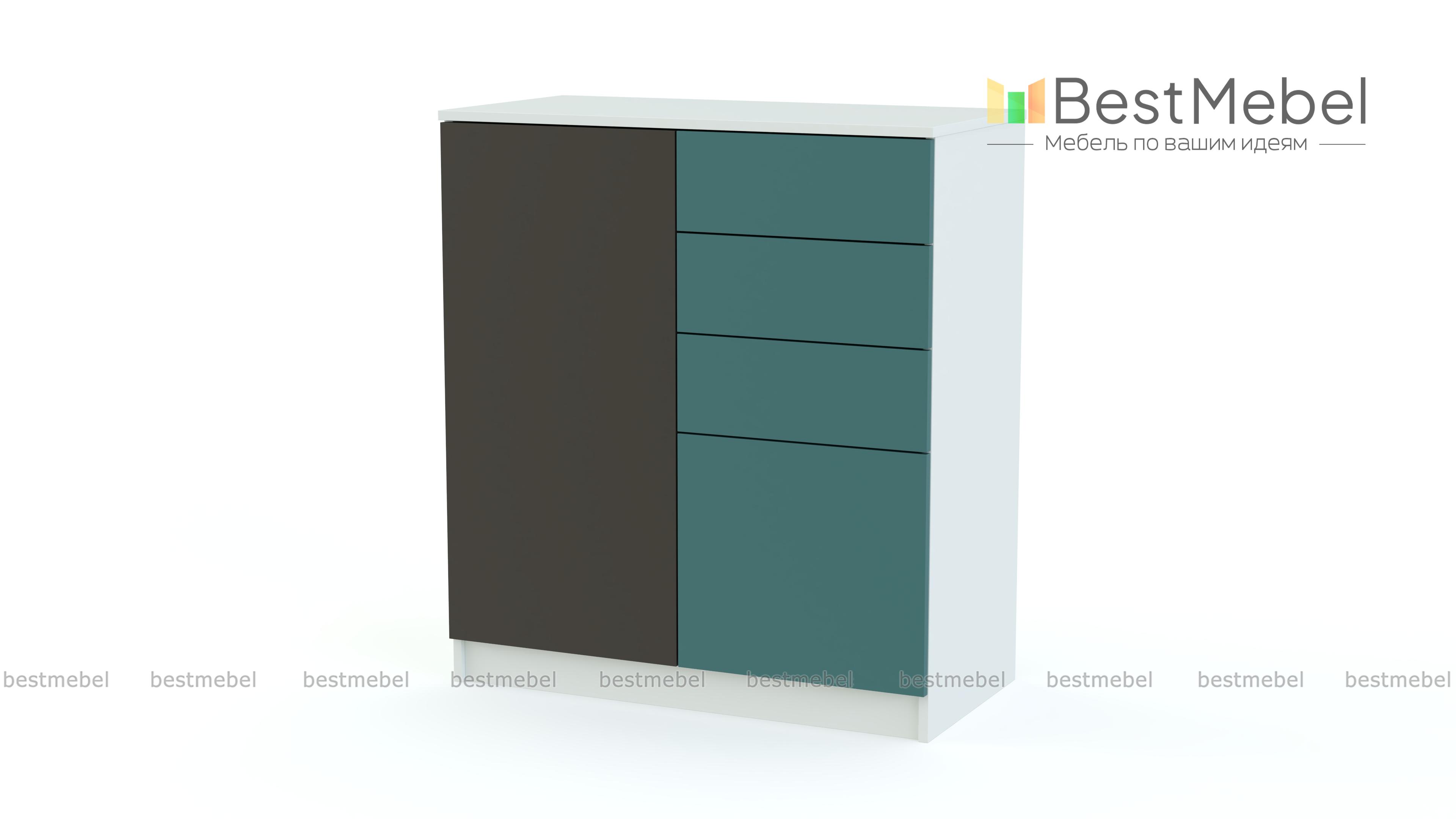 Высокий комод из популярной серии Шайн позволит не только организовать удобное хранение для постельного белья, одежды и документов, но и станет стильным акцентом в интерьере спальни или гостиной. Современная модель оснащена четырьмя выдвижными ящиками и просторным распашным отделением. Фасады выполнены в модном матовом оттенке насыщенных контрастных оттенков, дверцы оборудованы эргономичной системой открывания. Комод Шайн 7 BMS – прекрасный выбор для ценителей минимализма и функциональности.