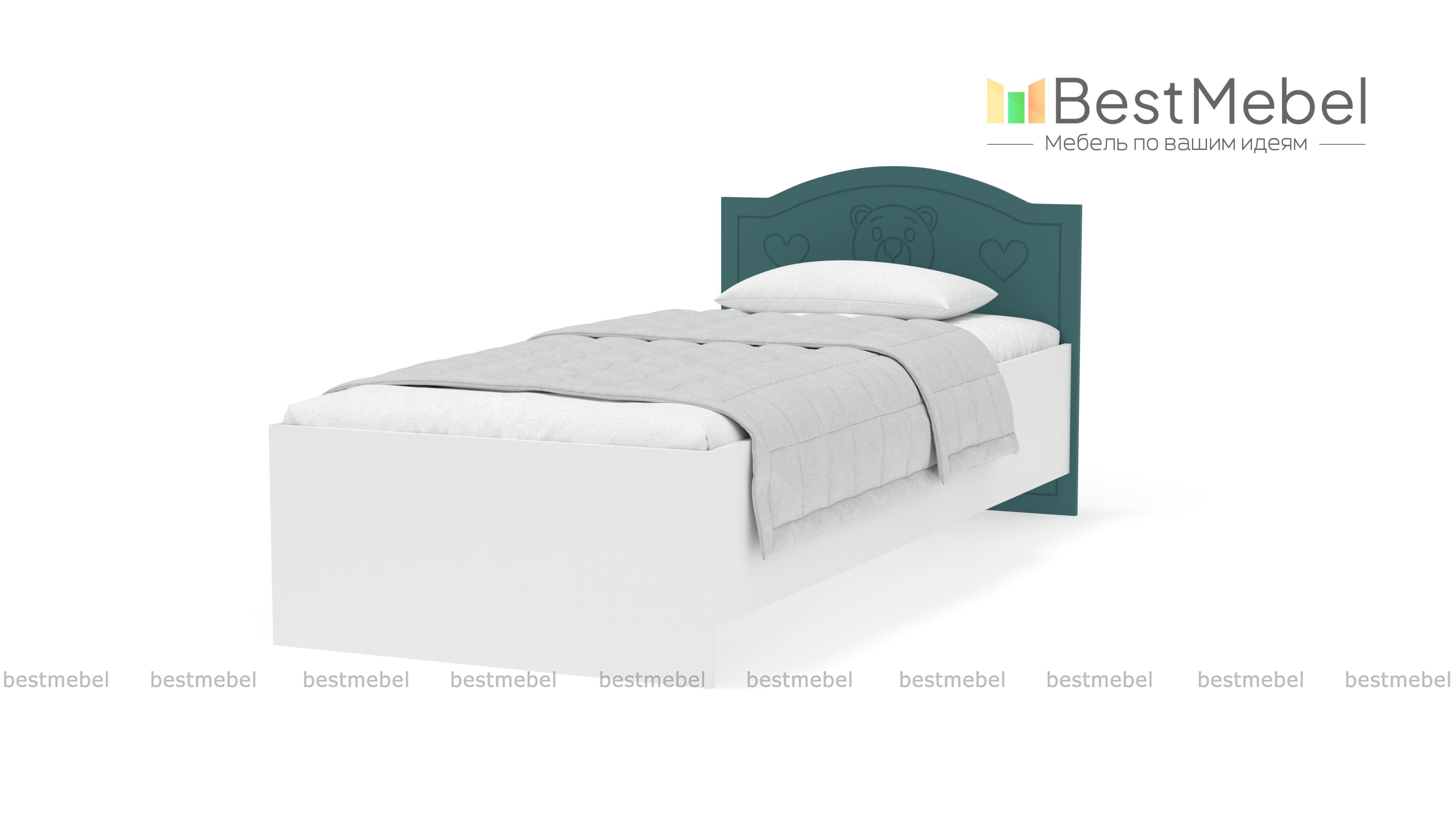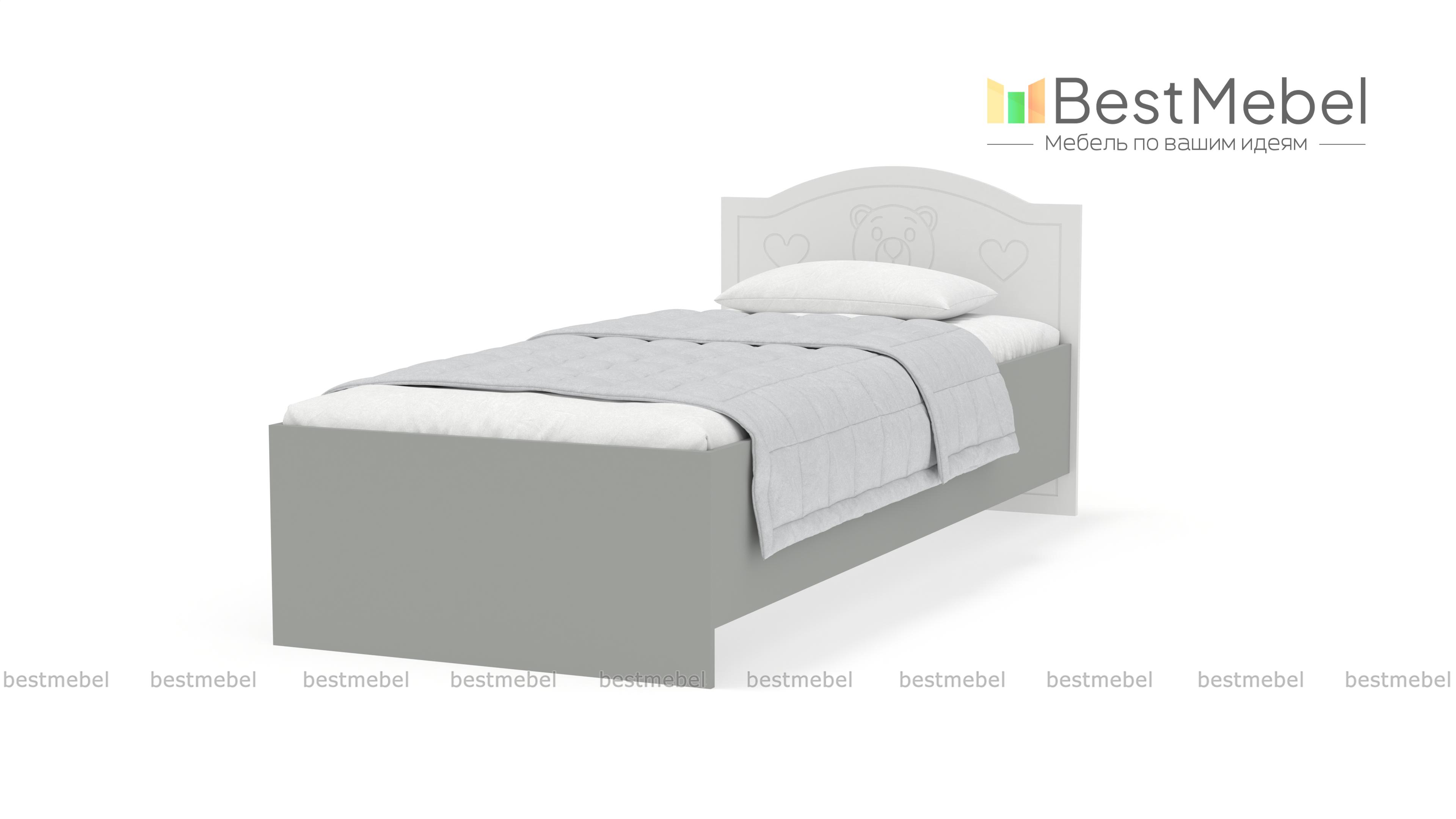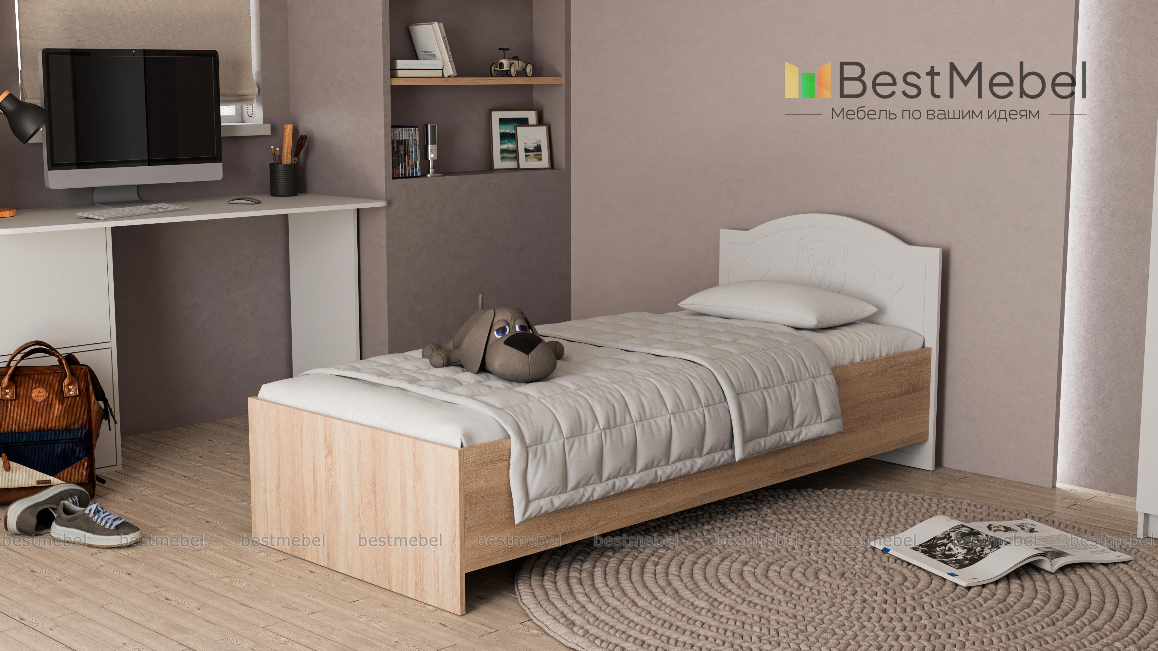 Кровать Мишка Вальтер BMS – романтичная модель для маленькой принцессы. Светлые пастельные тона и удобное основание подарят ребенку сладкие ванильные сны. Изюминкой изделия является оригинальный дизайн изголовья, украшенного мордочкой очаровательного медвежонка. По желанию заказчика кровать может быть дополнена выдвижными ящиками для белья или бортиком. А в комплекте с симпатичной тумбочкой в аналогичном стиле данная модель покорит сердца даже самых капризных принцесс. Купить кровать Мишка Вальтер BMS по минимальной цене можно на нашем интернет – портале.