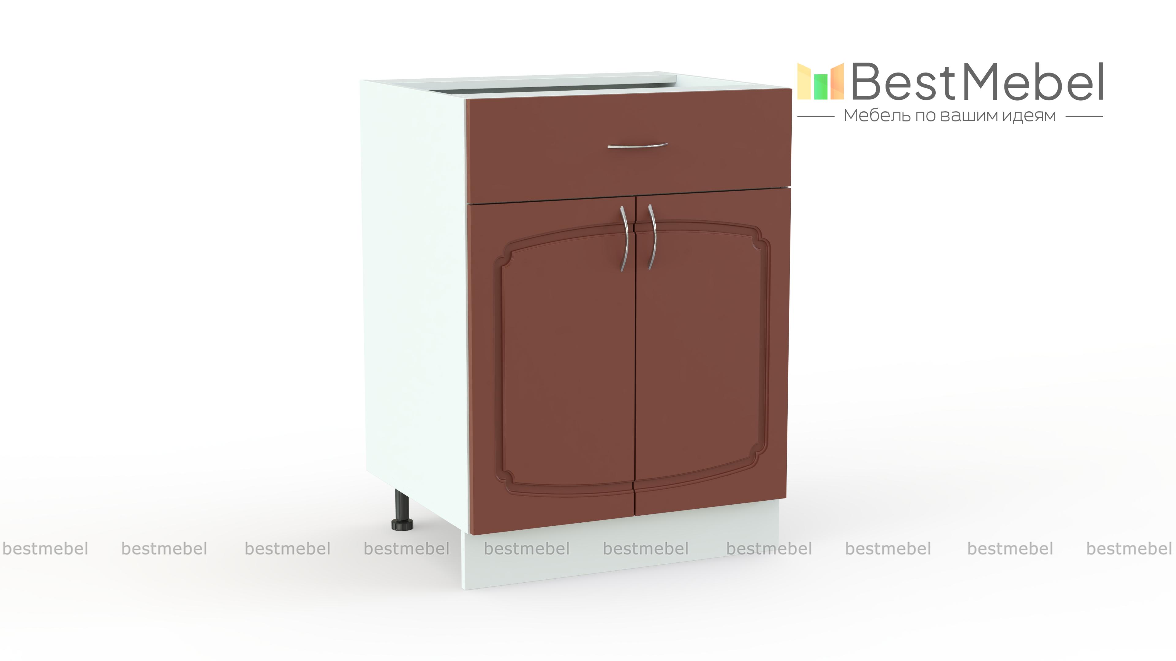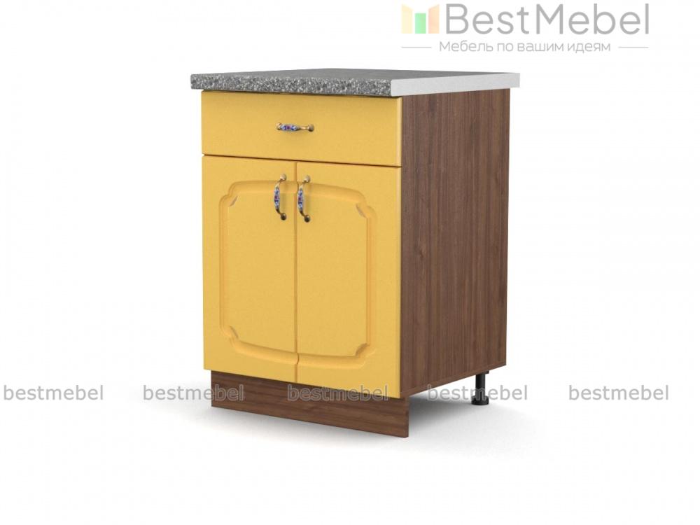 Эмилия шкаф напольный с ящиком BMS дополнит нижний ряд элегантной модульной системы и сделает интерьер кухни функциональнее. Классическая модель оборудована двумя типами отделений – широким выдвижным ящиком для столовых приборов и распашной секцией с полкой, подходящей для хранения запасов продуктов и габаритных кухонных принадлежностей. Эффектный вид шкафу придают фигурно вырезанный фасад с фрезеровкой и ручками под серебро. Купить Эмилия шкаф напольный с ящиком BMS вы всегда сможете в нашем интернет-магазине по приятной цене.