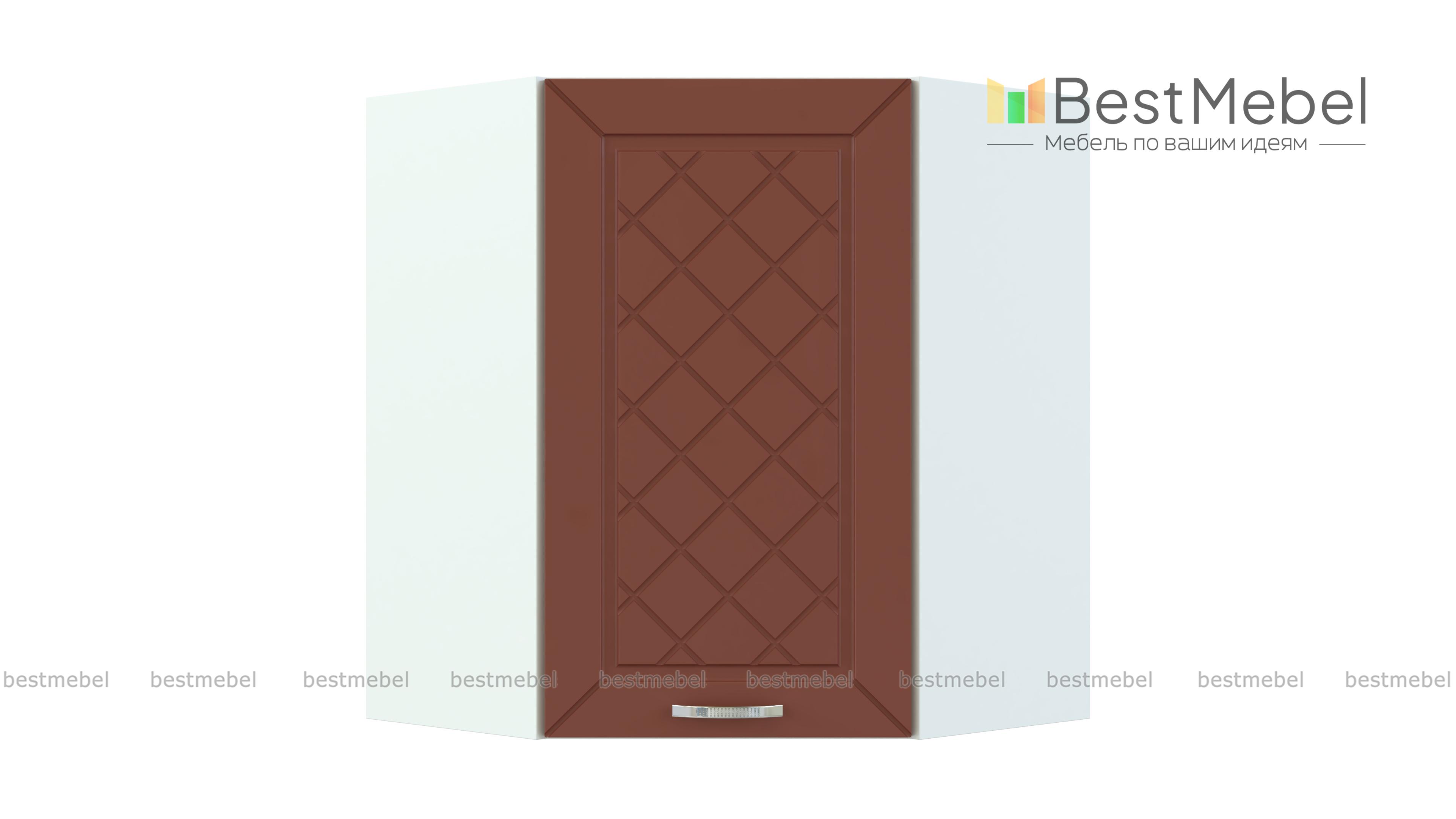 Шкаф верхний угловой 1 дверь Агава BMS может использоваться в меблировке кухни как самостоятельно, так и в комплекте с другими модулями серии. Угловой шкаф предназначен для стыковки прямых элементов и выполнен в форме трапеции. Практичная конструкция обеспечивает отличную вместительность, за распашной дверцей располагается просторное внутреннее отделением с полкой. Фасад выполнен в древесных тонах и декорирован традиционной фрезеровкой. Купить шкаф верхний угловой 1 дверь Агава BMS вы сможете в нашем интернет-магазине быстро и просто.