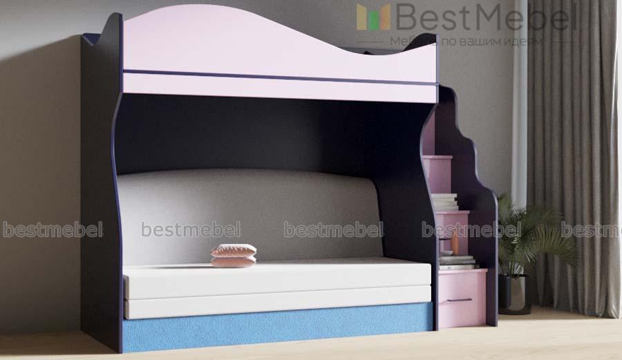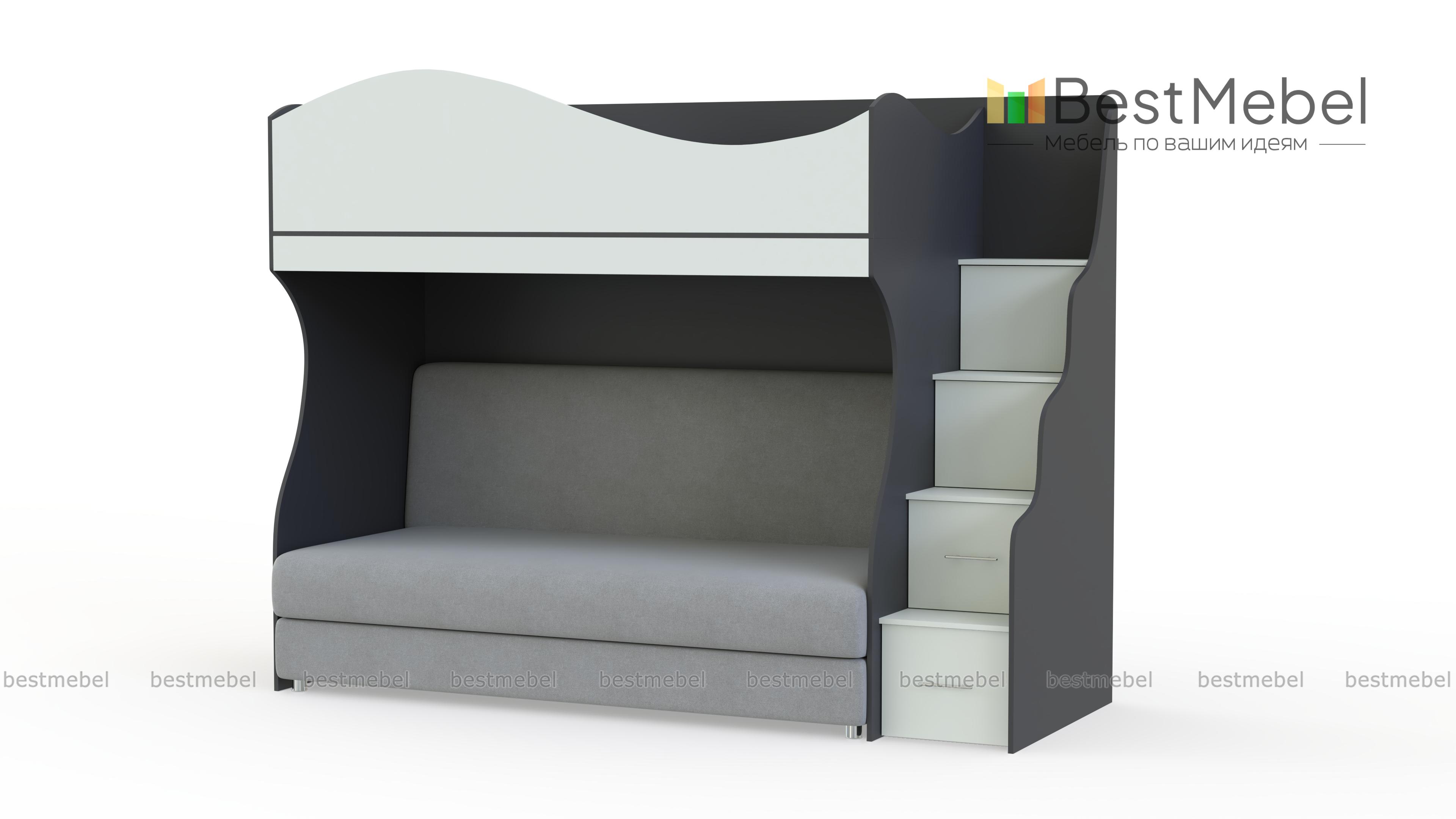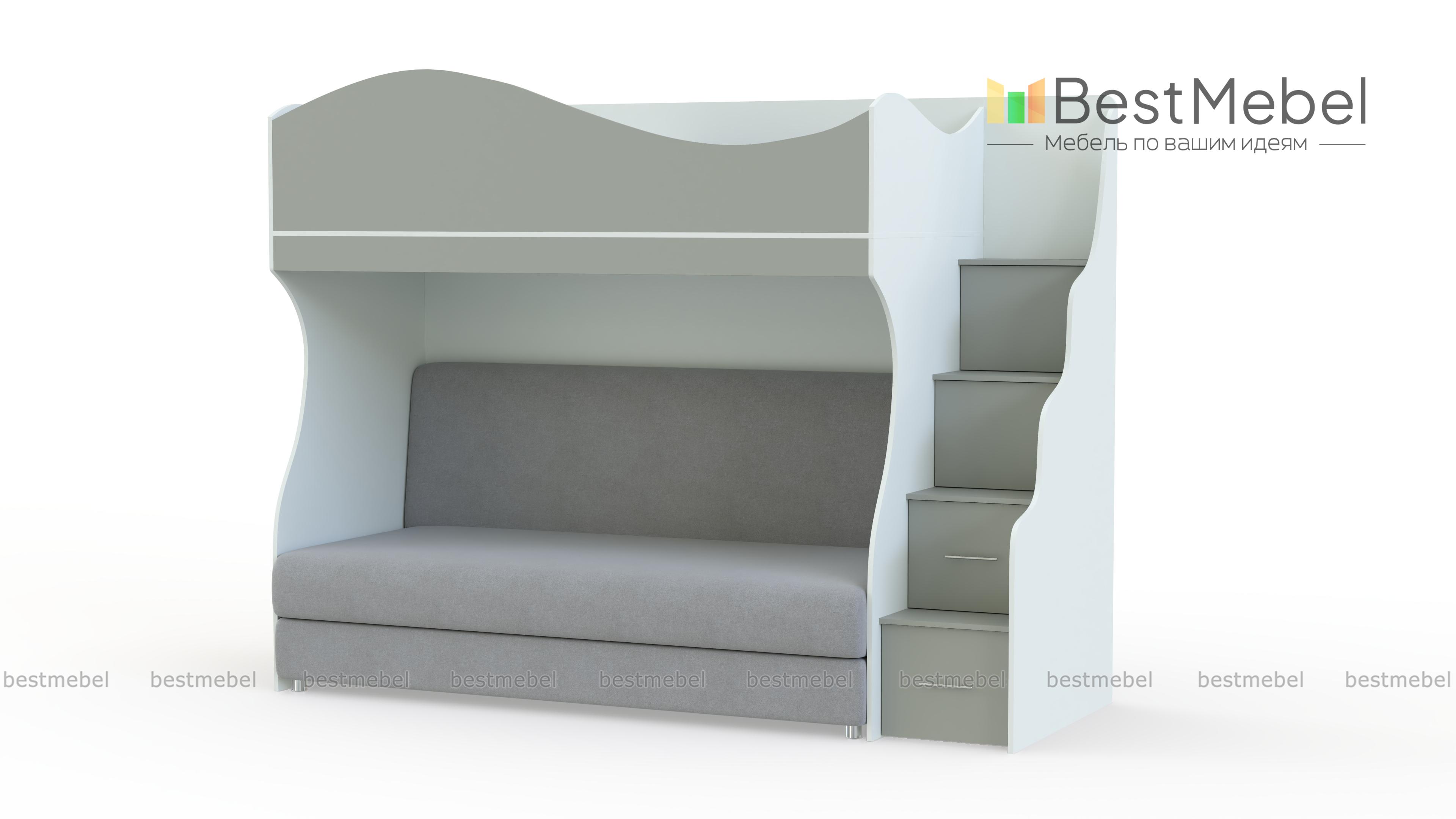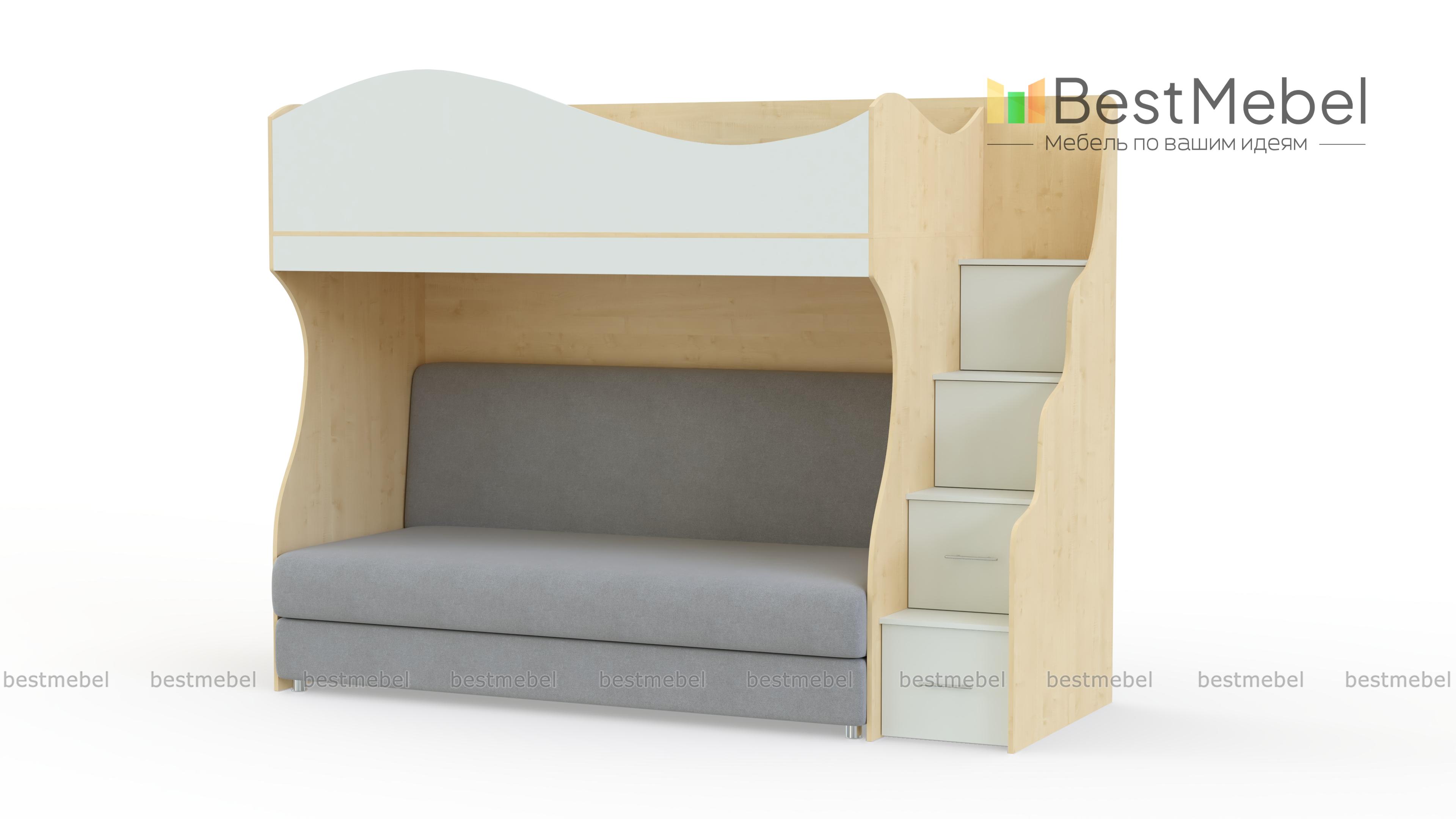 Детская кровать с диваном Дон Кихот 15 BMS объединила в стильной композиции комфортную зону отдыха и систему хранения. На втором ярусе располагается спальное место с фигурным бортиком, а в нише на первом – удобный двухместный диванчик. Легко забраться на второй ярус и разместить игрушки или книги поможет ребенку лестница-комод. В оформлении скомбинированы корпус практичного светлого оттенка и нейтральный древесный фасад. Купить детскую кровать с диваном Дон Кихот 15 BMS приглашаем в наш интернет-магазин.