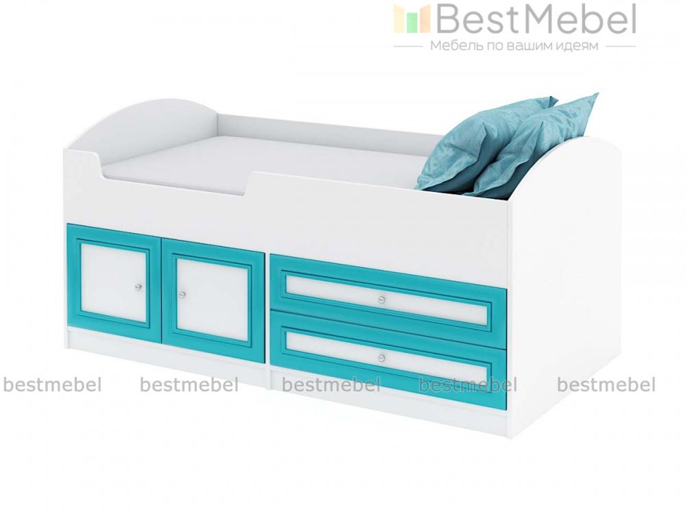 Симпатичная детская кровать Твинс-3 BMS решает проблему с организацией места для сна ребенку-дошкольнику. В конструкции соединяются постель (габариты 60 х 170 см) с ДСП-основанием и элементы для хранения одежды, игрушек, текстиля. Они представлены в виде двух выдвижных ящиков и объемной ниши с распашными дверцами. Привлекательное рамочное оформление фасадов создает респектабельный запоминающийся облик, лаконичный стиль. В цветовой гамме ЛДСП каркаса сочетаются два оттенка.