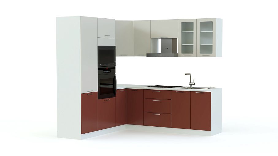 Комплект для кухни в стиле минимализм прост по форме, лаконичен и функционален. Насыщенная контрастная расцветка матовых фасадов отлично впишется в современные интерьеры, а угловая конструкция сэкономит место. Для комфортного пользования кухня Милос BMS оборудована пятью модулями в нижней части, пятью в верхней и пеналами, один из которых подходит для встраиваемой бытовой техники. Расцветку фасадов и столешниц вы сможете подобрать в нашем интернет-магазине.