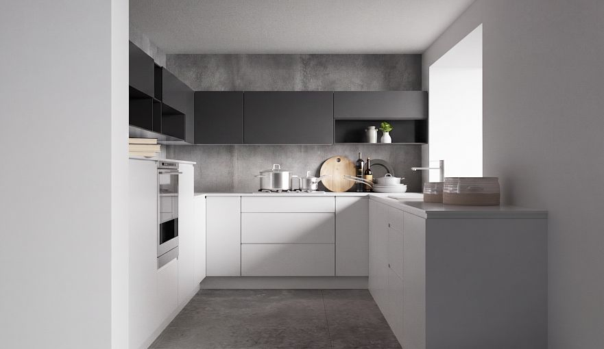 Кухня с открытыми полками СИГМА BMS имеет П-образную конструкцию, позволяющую с максимальной эффективностью использовать пространство. Поклонники минимализма по достоинству оценят лаконичные фасады с ручками-выемками и цветовое решение в контрастных тонах. Вместительные распашные отделения, выдвижные ящики и секции под встраиваемую бытовую технику нижнего ряда дополняют навесные шкафчики с открытыми полками для посуды и специй. Залогом долговечности станут материалы высокого качества. Купить кухню с открытыми полками СИГМА BMS приглашаем в наш интернет-магазин с учетом необходимых параметров.