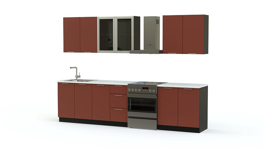 Эта модель станет настоящим украшением Вашего дома. Стильная и функциональная кухня № 31 BMS выполнена из современных качественных материалов с использованием модных цветов. Сочетание черного и терракотового – смотрится очень презентабельно. Для комфортного пользования предусмотрено все необходимое: три напольные тумбы, одна под мойку, с полками и выдвижными ящичками, три навесные модуля, один из которых за стеклянными дверками для посуды. В нашем интернет-магазине Вы можете купить кухонный гарнитур №31 BMS в необходимых Вам цветах и любого размера.