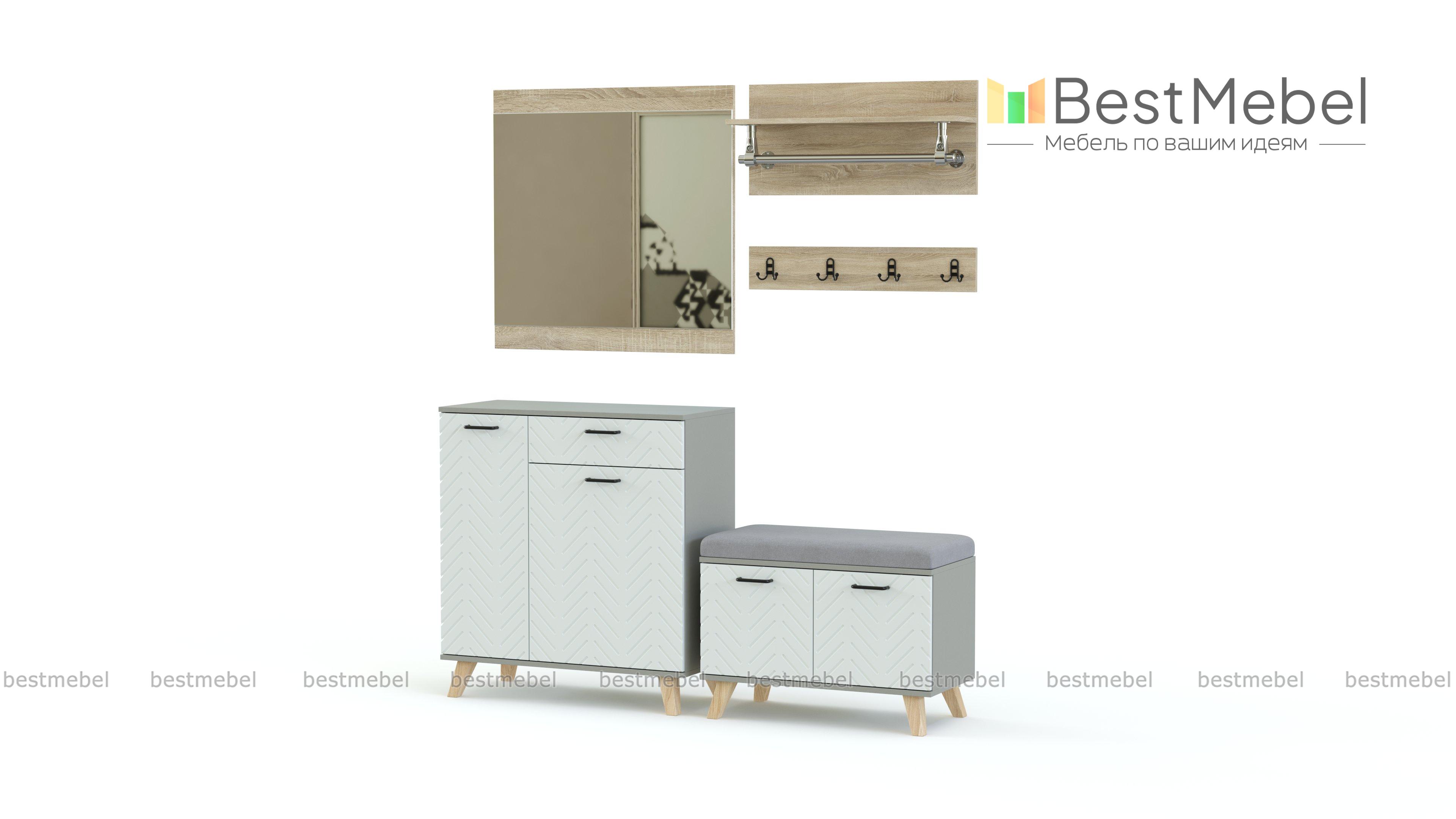 Прихожая Эста Нео 11.2 BMS с фрезеровкой в скандинавском стиле будет одинаково хорошо смотреться в просторных домах и уютных студиях. Модульный комплект отражает современные тренды, позволяя удобно спланировать пространство и придать ему индивидуальные черты. Прихожая включает в себя высокую комбинированную тумбу, дополненную навесным зеркалом, распашную обувницу с мягкой обивкой сиденья и две открытые вешалки – с крючками и штангой. Купить прихожую Эста Нео 11.2 BMS приглашаем в наш интернет-магазин с выбором фурнитуры и цвета по каталогу.