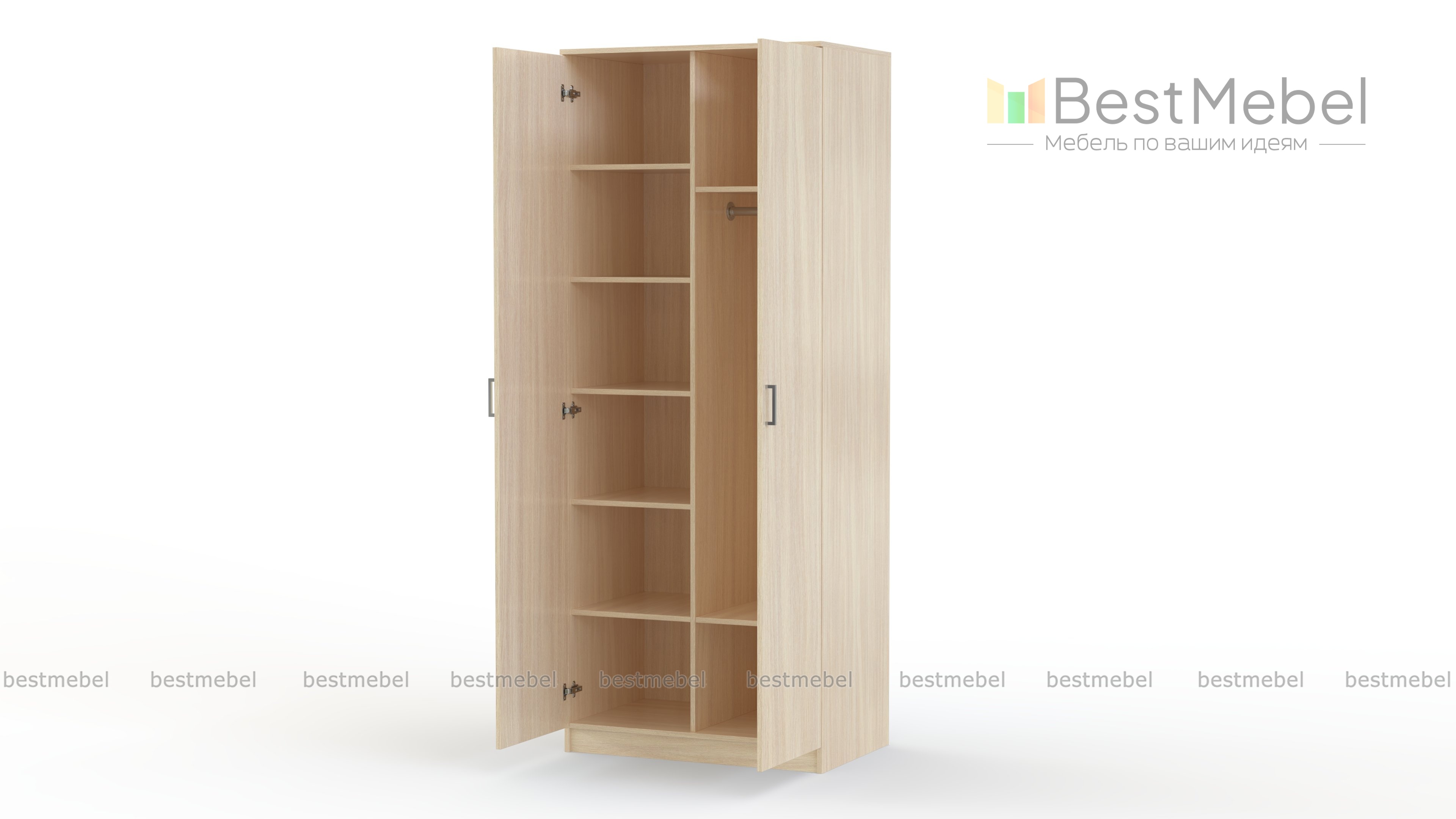 Шкаф Эконом 9 BMS - это недорогой базовый вариант для спальни или прихожей. Двухдверная распашная модель выполнена из качественной ламинированной плиты древесных тонов и оснащена удобными ручками-скобами. Преимуществом шкафа станет внутреннее наполнение, включающее в себя бельевую секцию и платяное отделение с металлической штангой. Купить шкаф Эконом 9 BMS приглашаем в наш интернет-магазин.