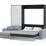 Шкаф-кровать с диваном Жанна BMS позволит вам сэкономить полезную площадь и подходит для современных студий. Визуально легкая композиция в контрастной черно-белой гамме включает в себя пенал, модуль с откидной кроватью и просторный угловой диван с принтованными подушками в роли спинки. Полноценное спальное место вы получаете при помощи надежного и простого в эксплуатации вертикального механизма. Купить шкаф-кровать с диваном Жанна BMS приглашаем в наш интернет-магазин по выгодной цене.