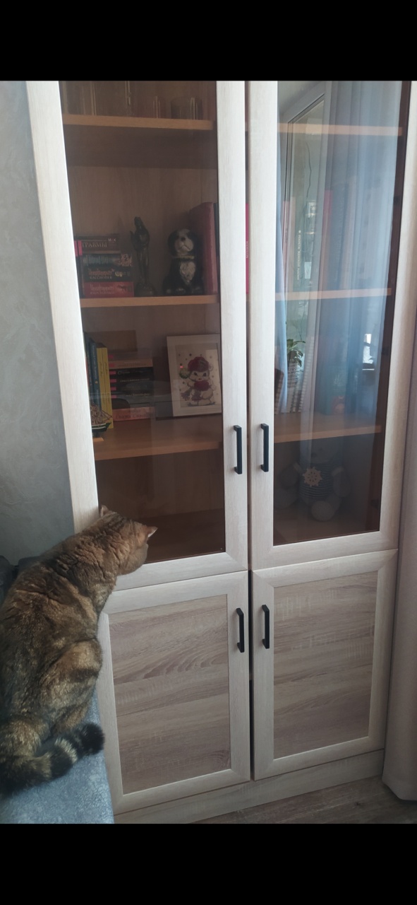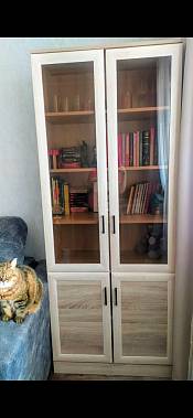Хороший книжный шкаф. Сделали под мои размеры + выбрал дверцы с доводчиками и подрезку под плинтус, и еще ручки. Лучше собирать в конструкторе, чтобы не упустить детали изделия. Изготовление и доставка до Беларуси +/- 3 недели, собрать шкаф можно самому. Пару дней пах ДСП или краской, или еще чем-то таким, потом проветрился и сейчас все нормально. Заказ:№ 1229910.