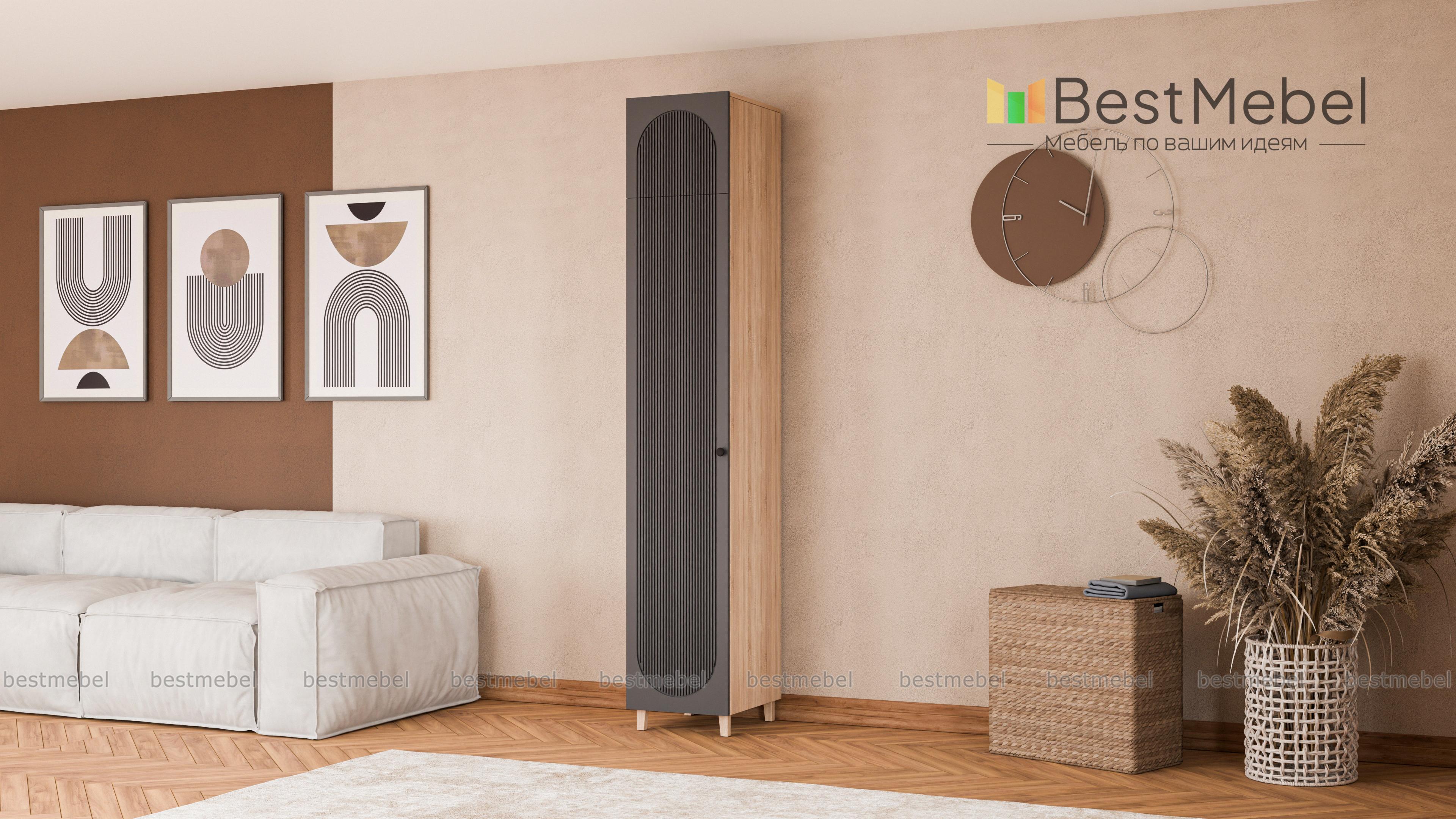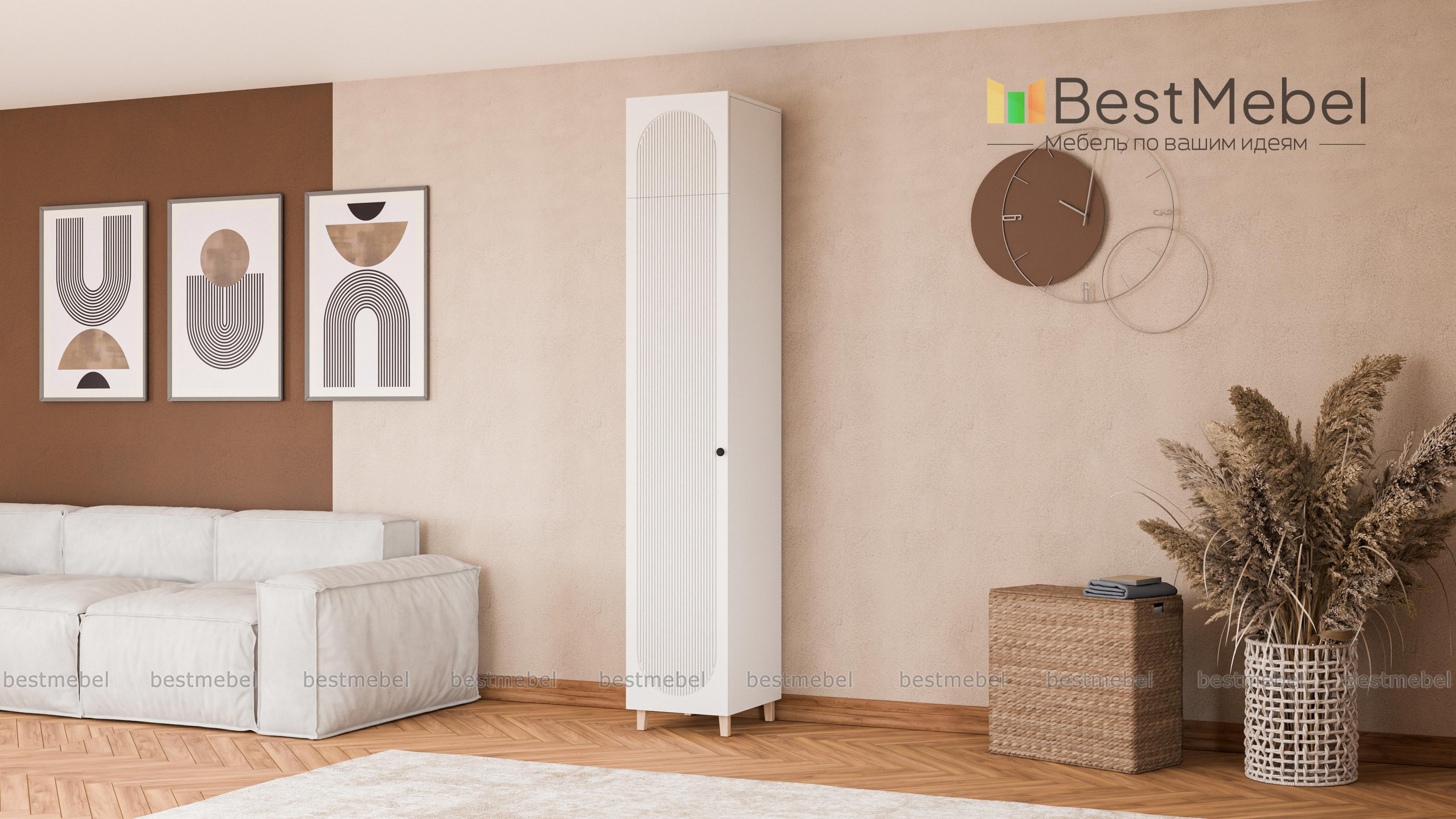 Шкаф-пенал Рене 13 BMS обеспечит удобное и эстетичное хранение вещам даже в небольшой комнате. Модель увеличенной высоты с деревянными опорами оборудована как стандартным распашным отделением, так и антресолью. Элегантный современный дизайн создает сочетание светлых и древесных тонов с оригинальным фасадным рельефом и легким силуэтом. Купить шкаф-пенал Рене 13 BMS в оттенках нашего каталога и необходимом размере вы всегда сможете на сайте интернет-магазина.