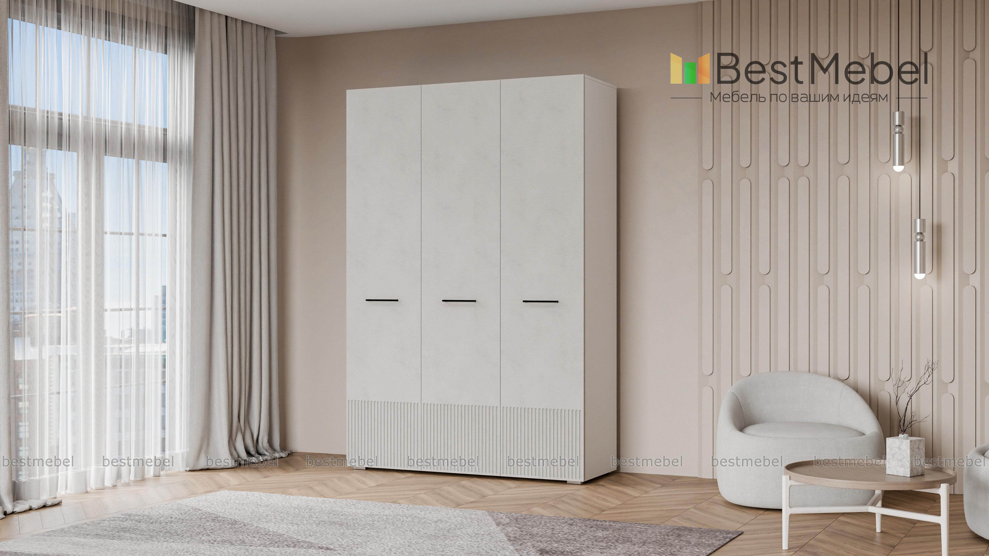 Шкаф распашной Декарт 3 BMS сохранит порядок в спальне, детской комнате или входной зоне. За двумя дверцами справа скрыта штанга для одежды, а однодверное отделение слева оборудовано полками. Элегантный фасад с рельефом и оригинальными ручками-скобами хорошо сочетается с разными интерьерами, помогая создать гармоничную обстановку. Купить шкаф распашной Декарт 3 BMS вы сможете в нашем интернет-магазине, самостоятельно подобрав размеры, цвет и наполнение.