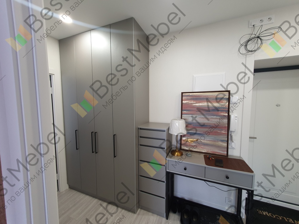 Шкаф распашной Остин Лайт 3 BMS (1400х2600х500). Прекрасный шкаф, хорошее качество исполнения. Прихожую обставила всю из Бестмебель (интересовал именно функционал: чтобы было куда сложить шапки, шарфы(ящики комода), повесить одежду (шкаф), бросить бумаги и сумочку по приходу (консоль)).Был брак на средней дверке на самом видном месте на уровне глаз, попросила заменить-заменили в кротчайшие сроки+доложили петли на две двери(12штук)- изначально их положить забыли, выяснилось в ппоцессе сборки только.Сама заменила штангу (в цвет, с покрытием), "родная" не нравилась-очень уж сильно об нее гремят вешалки.Заказом довольна, рекомендую👍. Огрехи есть, но если не на видном месте-закрываем глазки😉, цена устраивает.