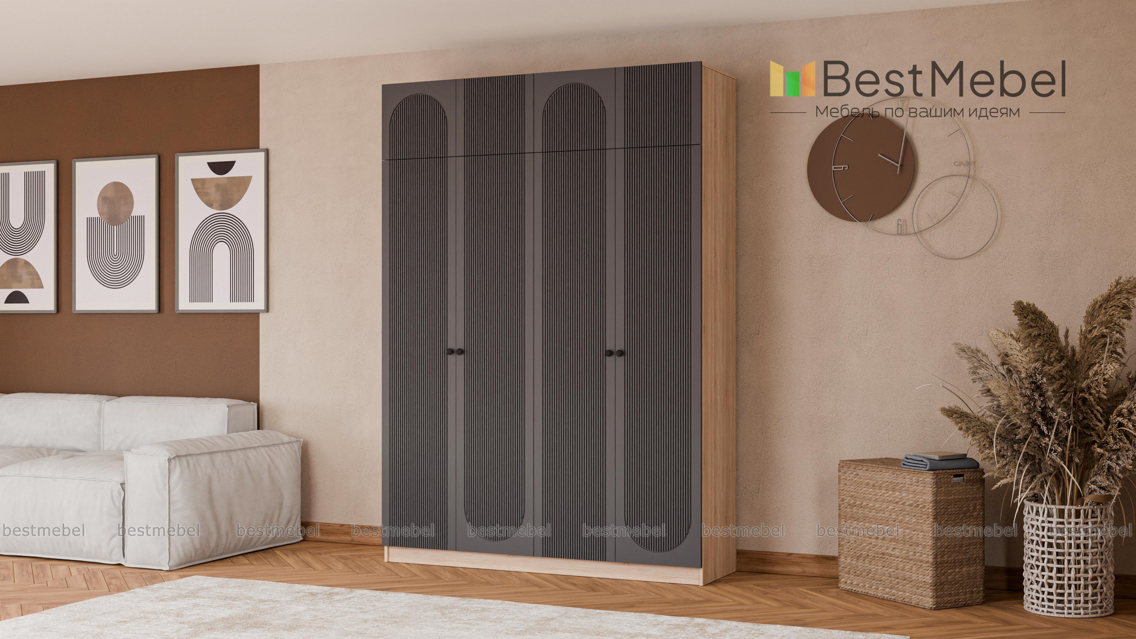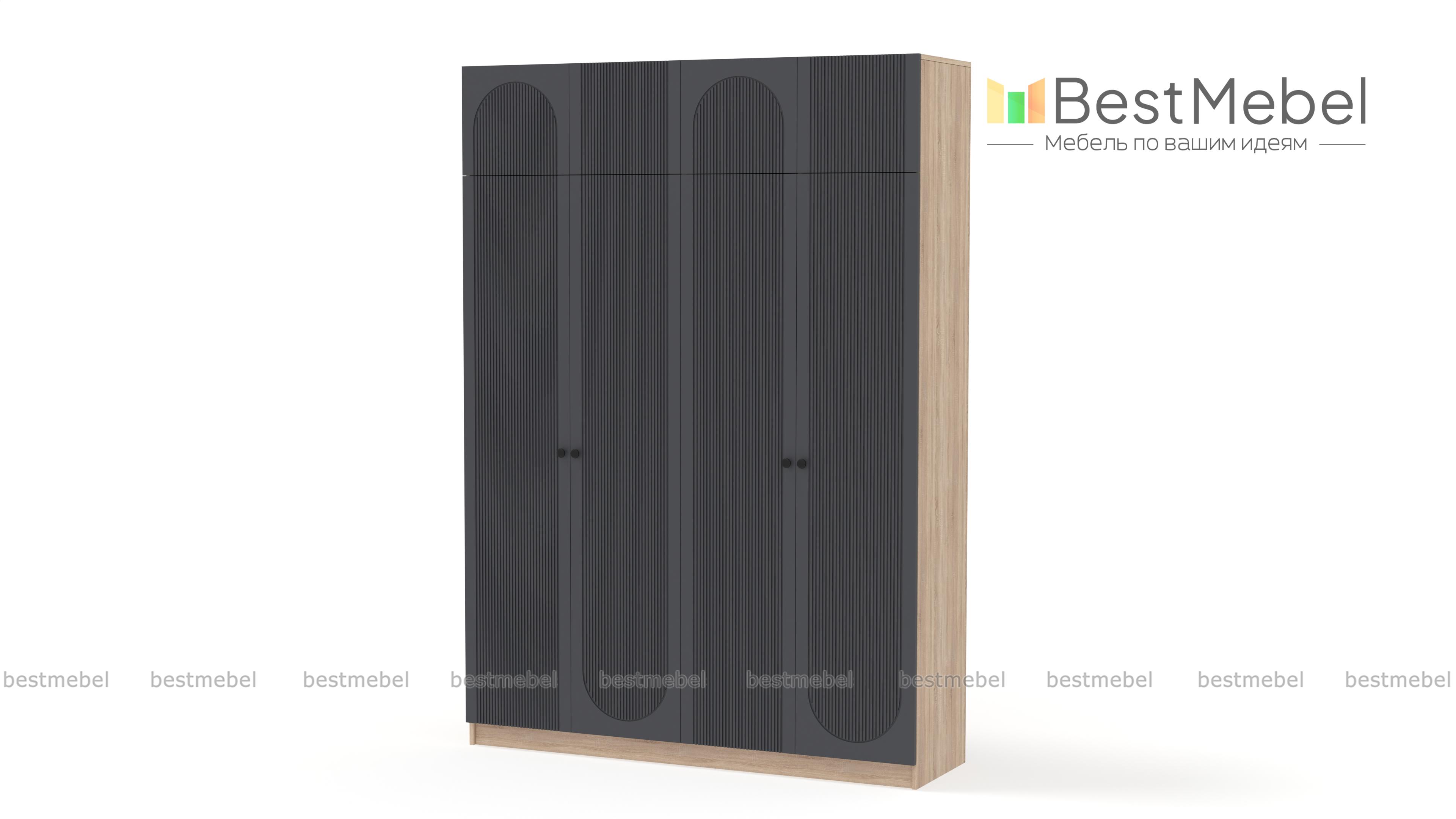 Шкаф распашной Рене 28 BMS по максимуму использует помещение в высоту. Модель оборудована двумя платяными отделениями, а дополнительное место хранения для редко используемых вещей создает антресоль. Четырехдверный гардероб совсем не выглядит громоздко благодаря светлому оформлению и изящному вертикальному рельефу на створках. Купить шкаф распашной Рене 28 BMS вы сможете в нашем интернет-магазине, самостоятельно подобрав размеры, цвет и фурнитуру.