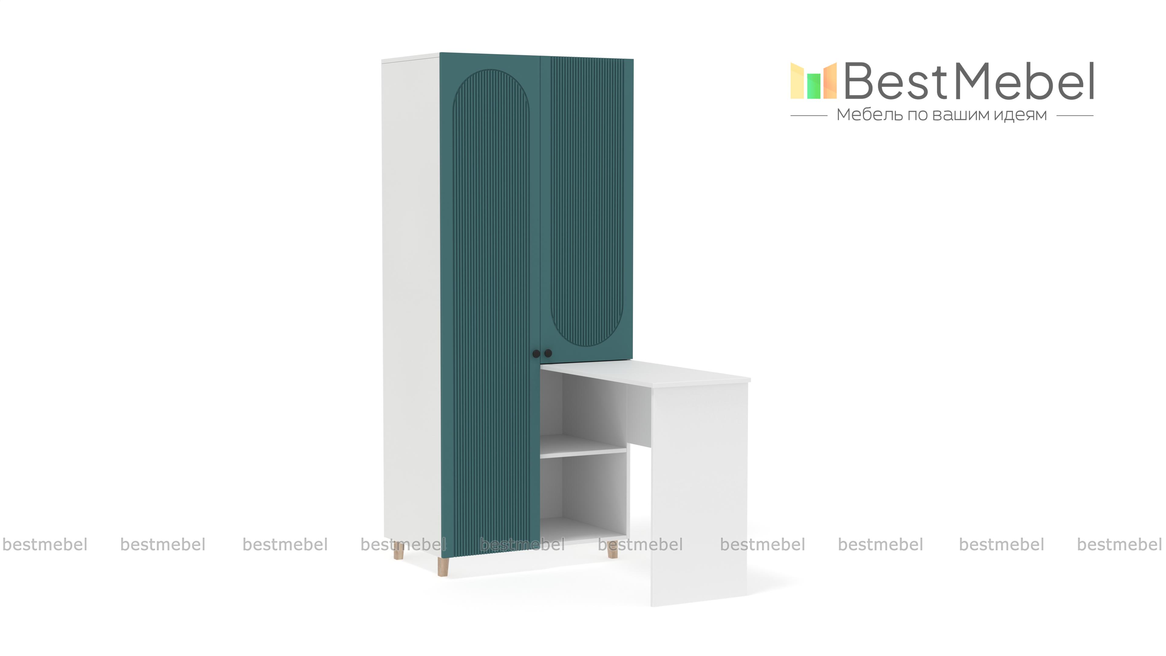 Шкаф со столом Рене 5 BMS обеспечит значительную экономию пространства в небольшой квартире или студии. Конструкция с распашными отделениями и открытыми полками позволяет разместить как одежду, так и материалы для работы или учебы. Письменный столик прямоугольной формы располагается под углом к стильному двухдверному шкафу с рельефным фасадом. Купить шкаф со столом Рене 5 BMS вы сможете на сайте нашего интернет-магазина с изготовлением по индивидуальным размерам.