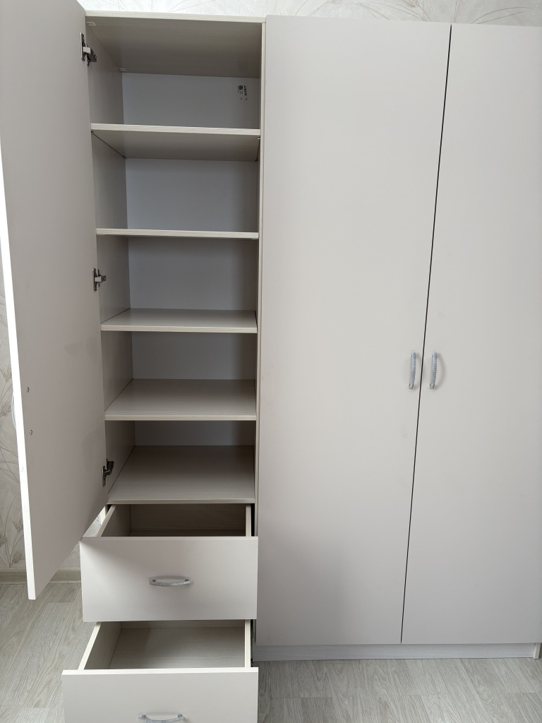 Переехали несколько месяцев назад в большую квартиру и решили приобрести новую мебель. Долго с мужем спорили, какой нам нужен шкаф. Решили взять нечто универсальное и на глаза попалась эта модель. Долго не думал и купили. Привезли нам шкаф и мы не были разочарованы. Мужу очень нравится зеркало на одной из дверей шкафа. А я рада, что вся наша одежда поместилась в один шкаф и рада, что есть полка для белья.