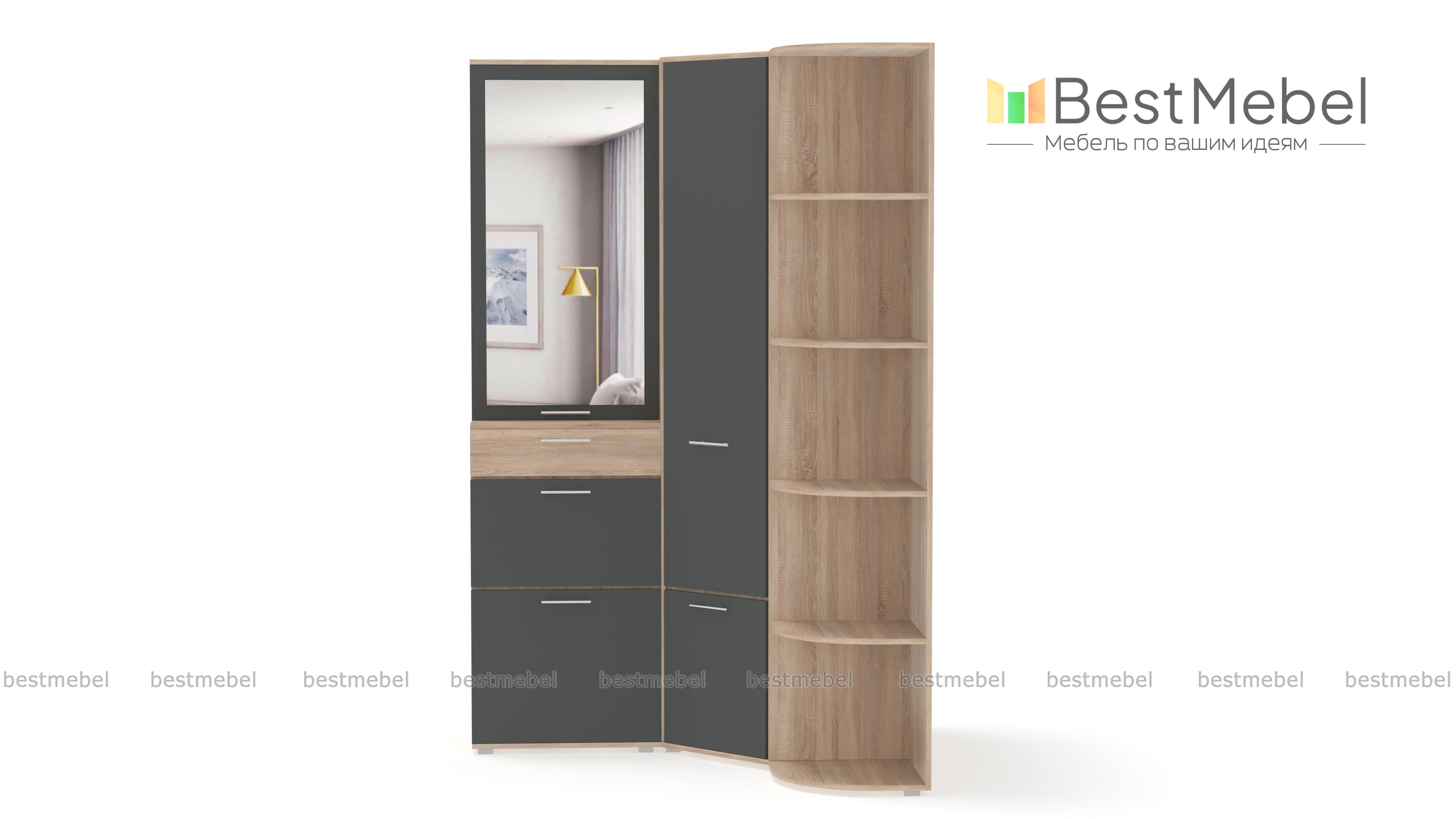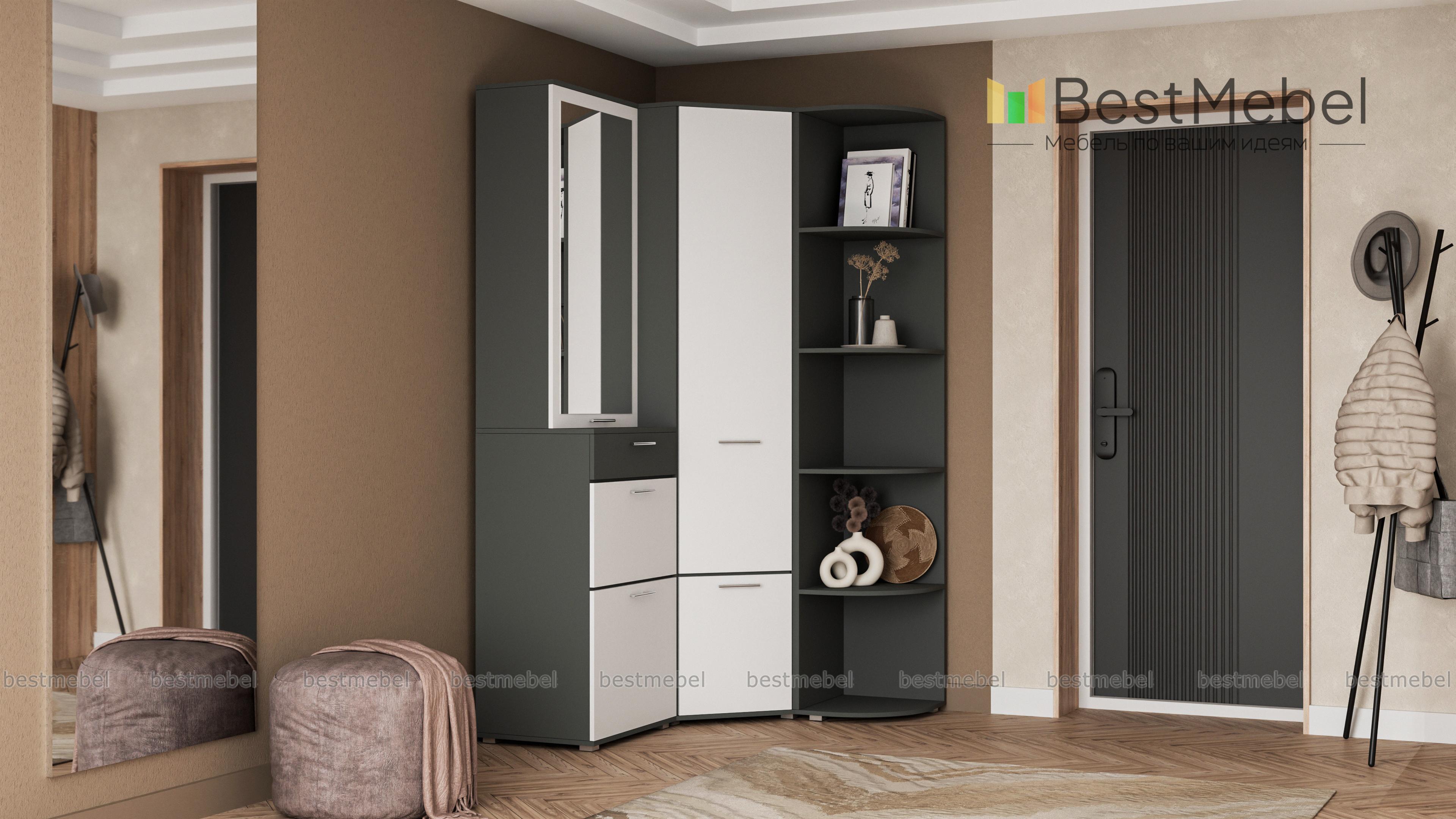 Угловой шкаф Вива 1 BMS – отличное решение для прихожей. Эта практичная конструкция займет минимум места, но её вместительное наполнение скроют взглядов гостей одежду и обувь. Удобные дверцы разграничивают отделения и легко без нареканий открываются. Модное сочетание контрастных цветов освежит интерьер и сделает Вашу прихожую неповторимой. Возможности сайта позволяют не только подобрать нужный цвет, но и выбрать самую комфортную компоновку. Купить угловой шкаф Вива BMS можно в нашем интернет – магазине быстро и недорого.
