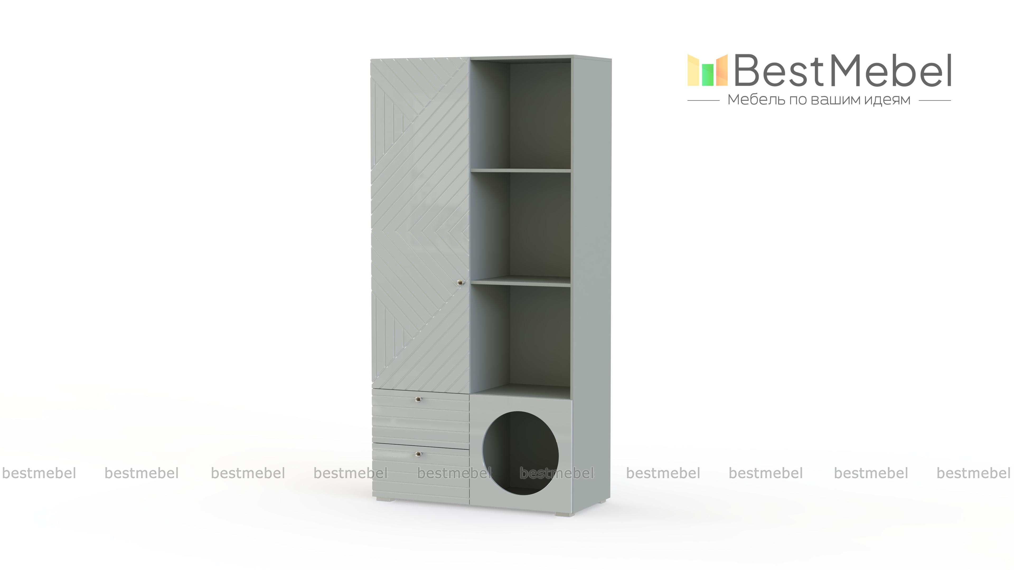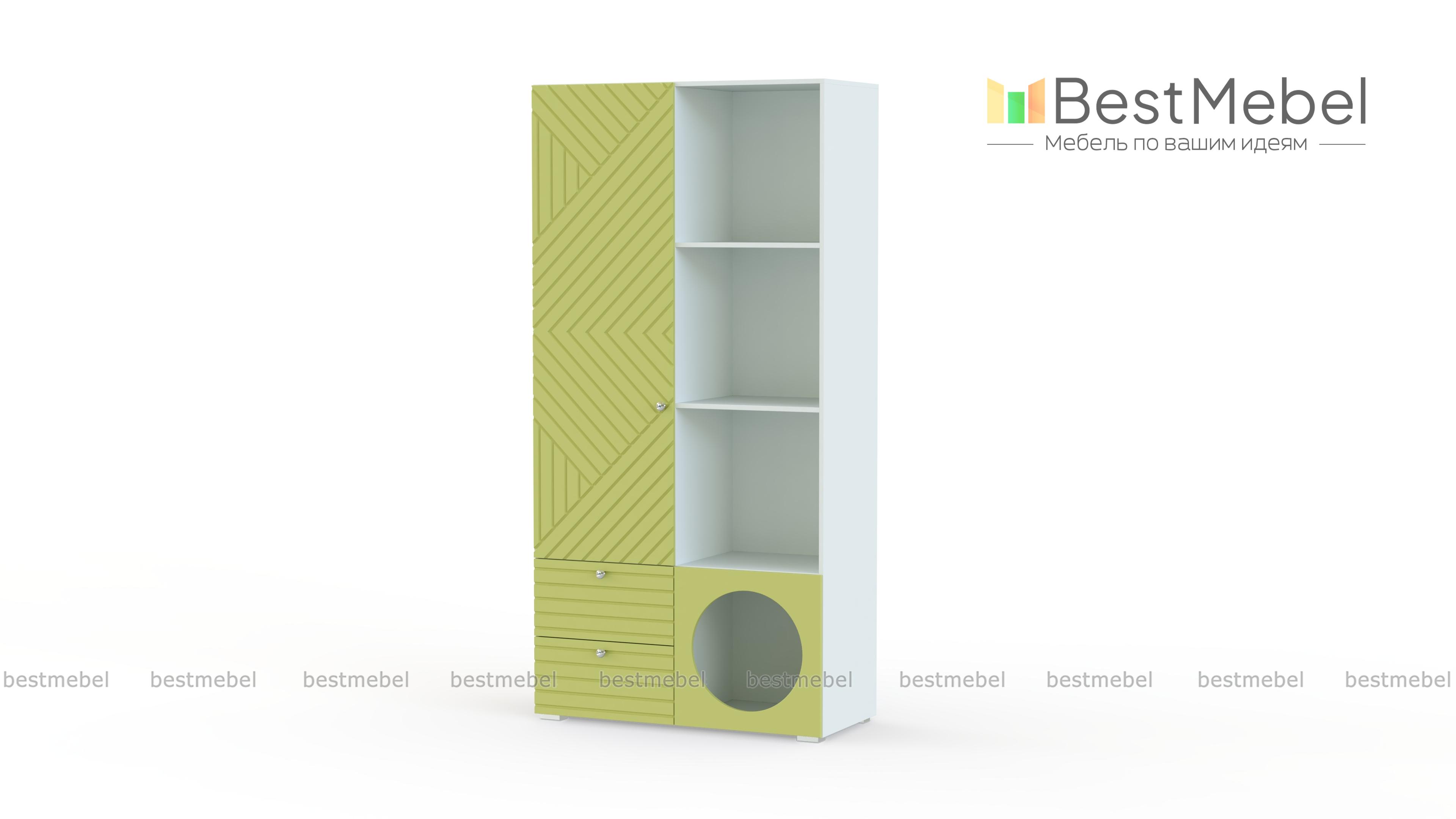 Стеллаж Авелин 14 BMS из молодежной коллекции мебели компактен и занимает немного места. Ряд книжных полок справа дополнен отделением для закрытого хранения слева, а в основании расположились пара ящиков под обувь и мелкие предметы и оригинальная круглая полка. Фасады стеллажа изготовлены из прочной плиты МДФ с геометрической фрезеровкой. Купить стеллаж Авелин 14 BMS, подобрав оттенки из нашего каталога и тип ручек, вы сможете на сайте интернет-магазина.