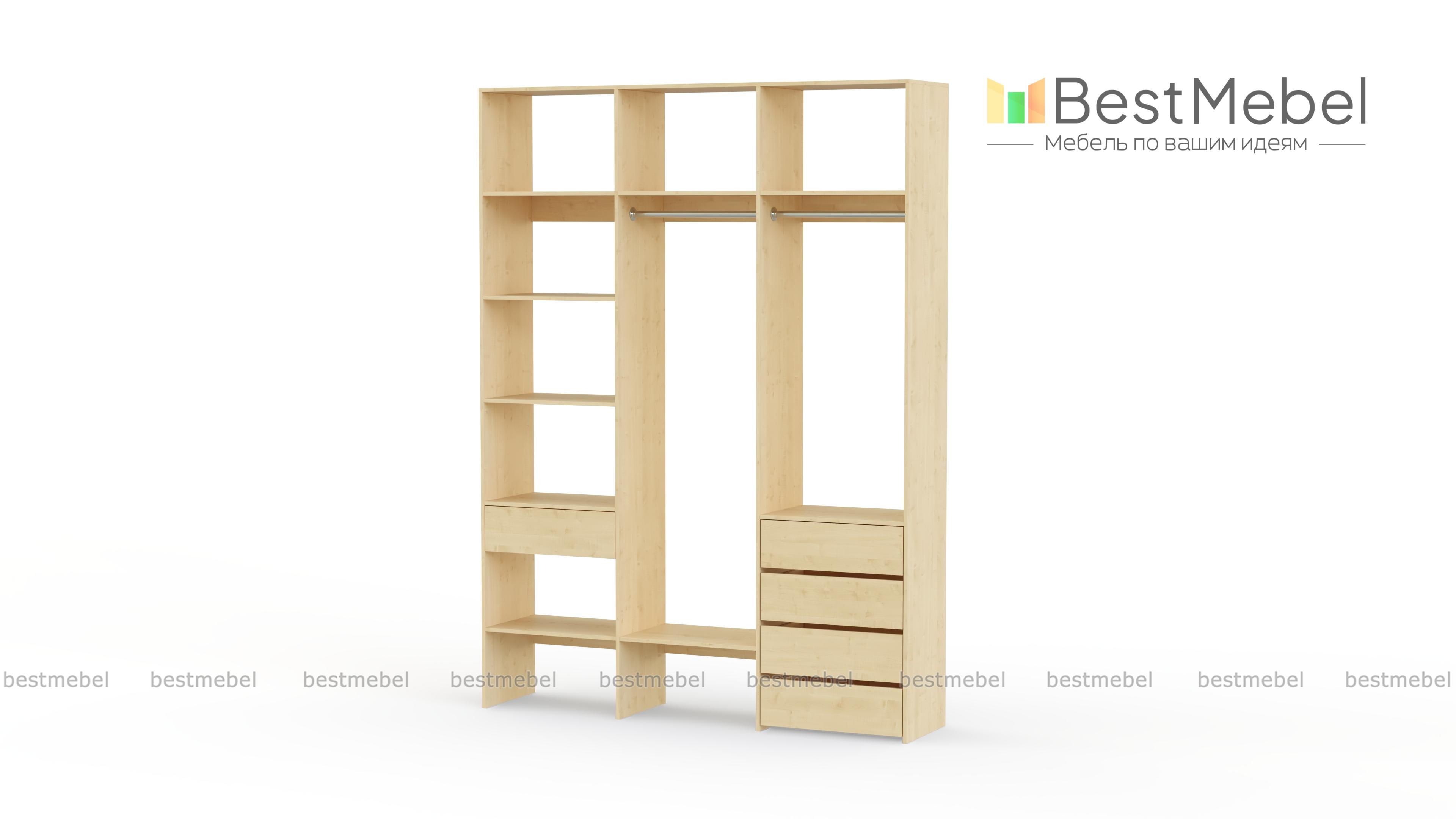 Стеллаж для одежды Мирта 17 BMS упорядочит хранение гардероба и сэкономит пространство. Многофункциональная конструкция с полками, двумя штангами и выдвижными ящиками легко заменит платяной шкаф и комод. Открытая модель стеллажа обеспечивает отличный обзор содержимому, помогая быстро найти нужную вещь. Купить стеллаж для одежды Мирта 17 BMS, подобрав необходимые размеры и гармонирующий с другой мебелью оттенок, приглашаем в наш интернет-магазин.