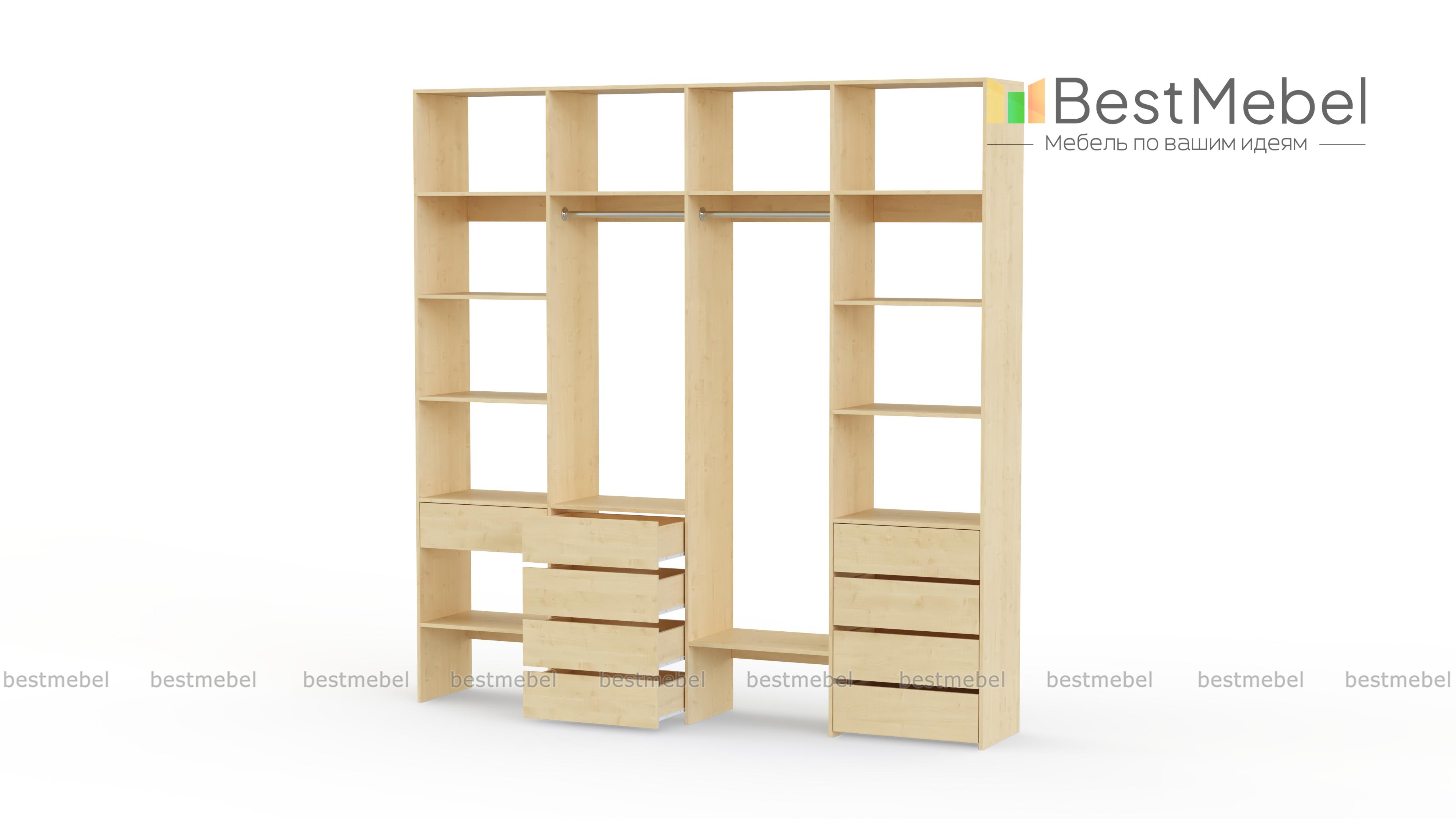 Стеллаж для одежды Мирта 19 BMS – практичный элемент интерьера современного дома. Обустроить функциональную и стильную гардеробную вам поможет комбинация из двух платяных штанг, бельевых комодов и открытых полок. Ламинированное покрытие не требует сложного ухода, а широкая цветовая гамма ЛДСП позволяет подобрать подходящий именно вам вариант. Купить стеллаж для одежды Мирта 19 BMS с изготовлением по индивидуальным размерам вы сможете в нашем интернет-магазине.