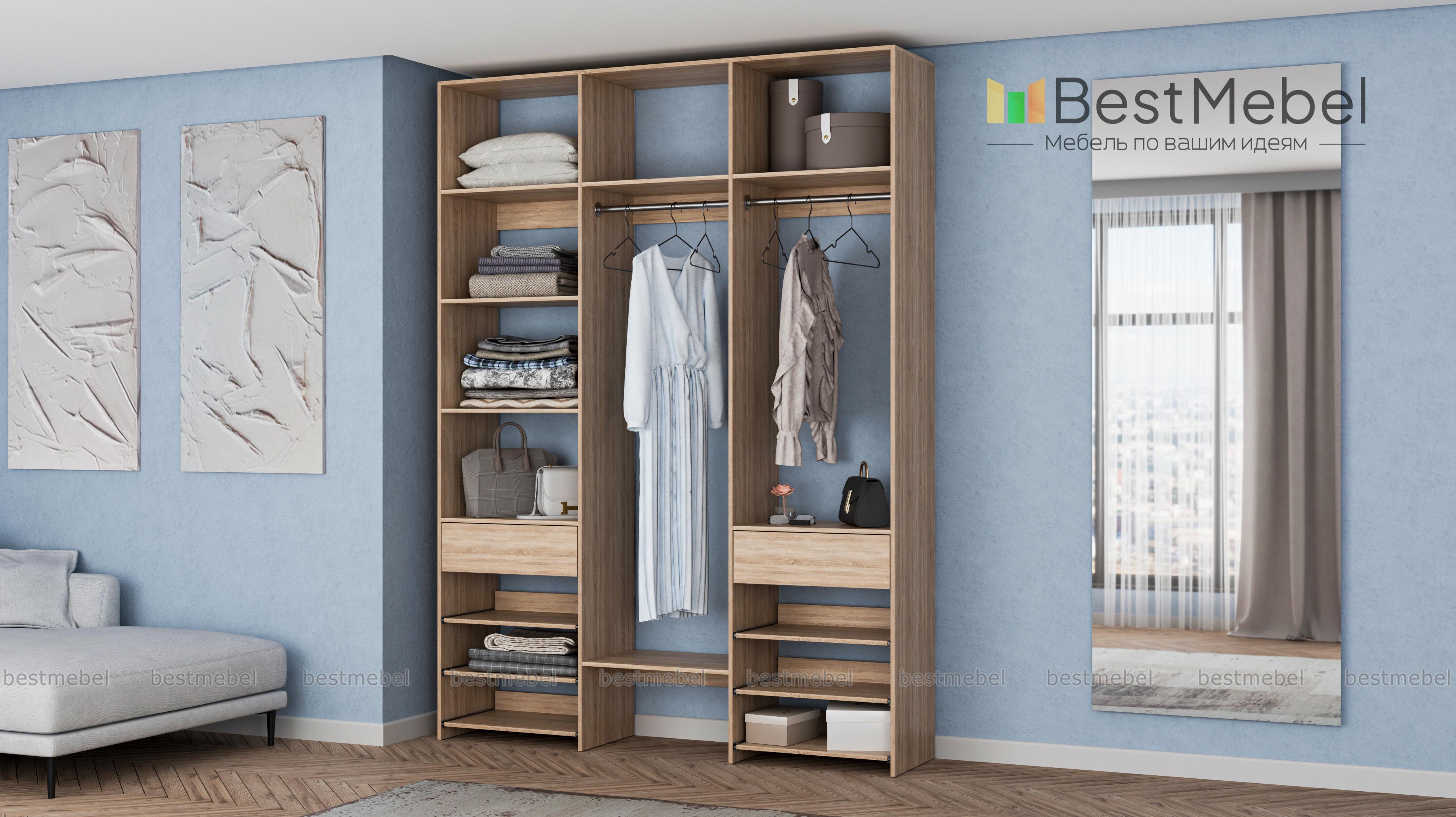 Стеллаж для одежды Мирта 89 BMS прекрасно подходит для хранения дома, в торговом зале или мастерской. Конструкция имеет две штанги, стационарные и выдвижные полки, а также два ящика, обеспечивая удобный доступ к одежде, обуви и аксессуарам. Износостойкие ламинированные поверхности в древесном оттенке надолго сохраняют эстетичный внешний вид. Купить стеллаж для одежды Мирта 89 BMS в подходящем вам размере и цвете можно по доступной цене на сайте нашего интернет-магазина.