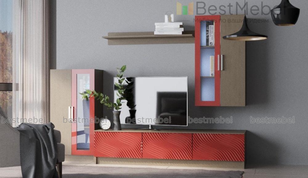Стенка в гостиную Блеск 34.1-3D BMS – стильная альтернатива привычным конструкциям в небольшой квартире или студии. Модульная стенка позволит максимально выгодно использовать пространство и впишется в помещения любой планировки. В комплекте низкая тумба под ТВ, напольный и навесной шкафчики с витринными отделениями и настенная открытая полка. Актуальный вид интерьеру придает сочетание древесных тонов и терракотового оттенка с 3D рисунком. Купить стенку в гостиную Блеск 34.1-3D BMS по лучшей цене вы сможете в нашем интернет-магазине.