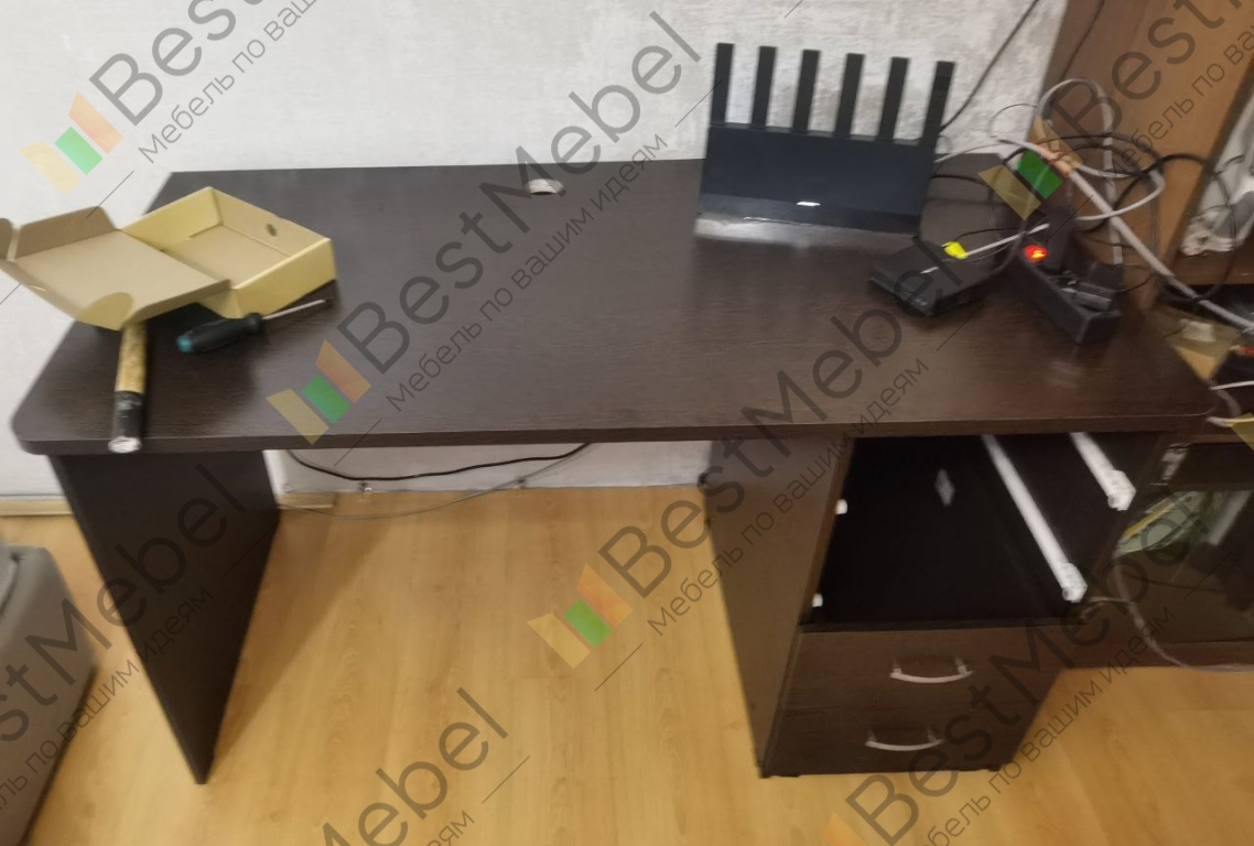 Отличный стол, качество просто супер! Скорость изготовления хоть и не 2-3 дня, как указано на сайте, но очень быстро! За полторы недели сделали под мои размеры, привезли. Собрал сам -- несложно. Единственный совсем маленький минус, винты под ручки ящиков положили длиной 40мм, там надо не более 35мм, ручки болтаются. Но с этим я разберусь претензий нет! В целом столом доволен очень :) Толстая столешница, крепкий. С моим старым не сравнить жаэе! Буду заказывать еще мебель в этой фирме!