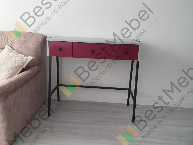 Консольный стол Хлоя 14 BMS лаконичен и прекрасно вписывается в интерьеры стиля минимализм, сканди или индастриал. Эффектная консоль, выполненная из ЛДСП в нейтральных цветах, располагается на легком металлическом каркасе с трапециевидными опорами. Широкая столешница и выдвижные ящики помогут разместить под рукой все необходимые уходовые средства и аксессуары, а также предметы декора. Купить консольный стол Хлоя 14 BMS с выбором цвета и размеров вы сможете в нашем интернет-магазине.