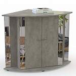 Тумба под аквариум Оттис 1 BMS эффектно сочетает в оформлении имитацию поверхности бетона, зеркальные вставки и хромированную фурнитуру. Модель с радиусной столешницей экономно использует пространство за счет угловой конструкции. Для удобного хранения сопутствующих аксессуаров тумба оборудована двухдверным распашным отделением с полками и открытыми боковыми секциями. Купить тумбу под аквариум Оттис 2 BMS вы сможете в нашем интернет-магазине, подобрав фурнитуру и цвет по каталогу.