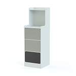 Тумба прикроватная Палитра 1 BMS гармонично впишется в современный спальный интерьер и разместит под рукой все необходимые мелочи, книги, уходовые средства и предметы декора. Высокая узкая тумба оборудована тремя выдвижными ящиками, нишей и открытой полочкой с плавно вырезанными боковинами. Корпус светлого древесного оттенка дополняют фасады серого и белого цвета. Купить тумбу прикроватную Палитра 1 BMS приглашаем к нам в интернет-магазин по доступной цене.