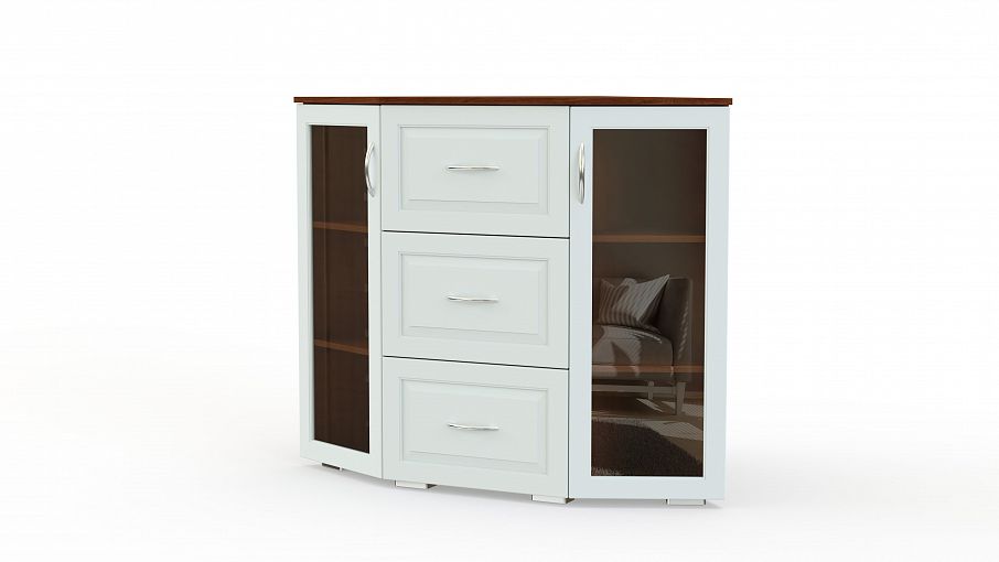 Тумба угловая Мадлен 9 BMS поможет сэкономить полезную площадь небольшой гостиной и эффектно оформить зону ТВ. Элегантная тумба с фрезерованными фасадами оборудована просторной столешницей, рядом из трех выдвижных ящиков и боковыми скошенными секциями с застекленными дверцами. Удобная система хранения позволит разместить как разнообразные бытовые мелочи, так и книги, посуду, декоративные предметы. Купить тумбу угловую Мадлен 9 BMS приглашаем в наш интернет-магазин, подобрав цветовое решение.