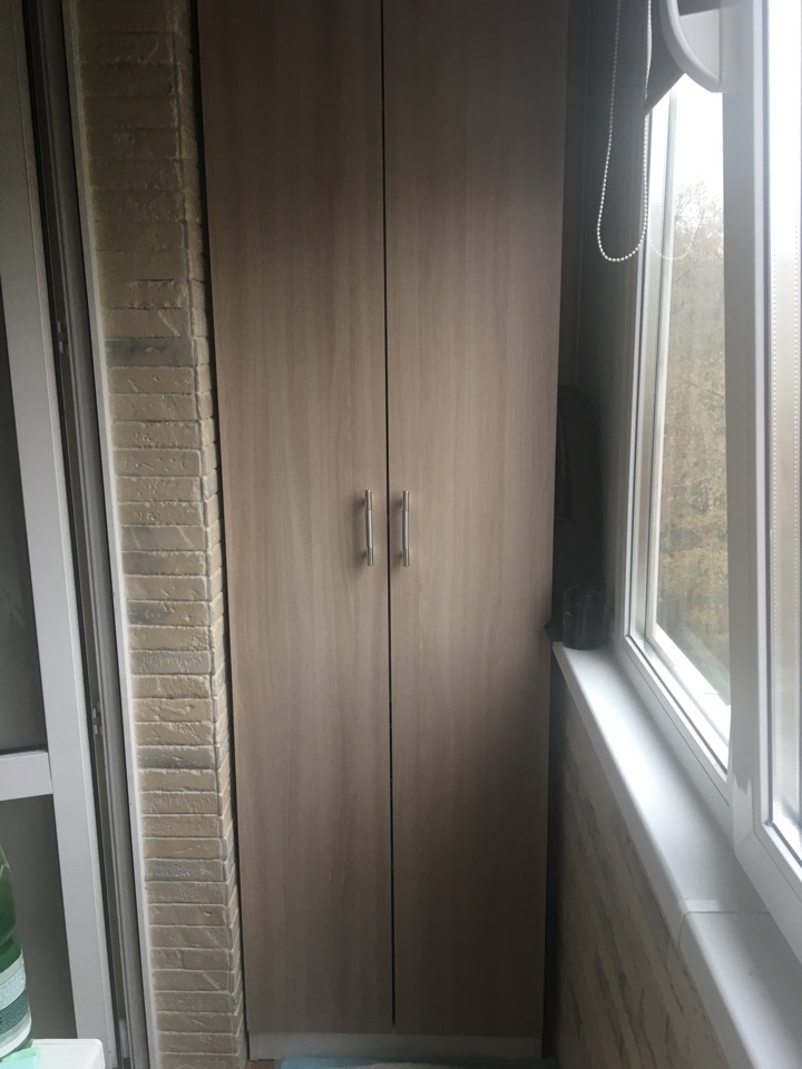 Заказ 00000407442. Нашла на сайте шкафчик для маленького балкона.  Привлекло то, что можно было скорректировать  размеры, исходя из параметров моего небольшого помещения.  Цвет панелей и фурнитуру  оказалось возможным выбрать самостоятельно, и это очень здорово, ведь у каждого свой вкус! Очень милые ребята-доставщики. Все в срок и без накладок. Никаких изьянов на деталях. Сборка заняла меньше часа. Я очень довольна. Всякий раз захожу на балкончик и любуюсь. Спасибо!!!! Собираюсь заказать кухню.