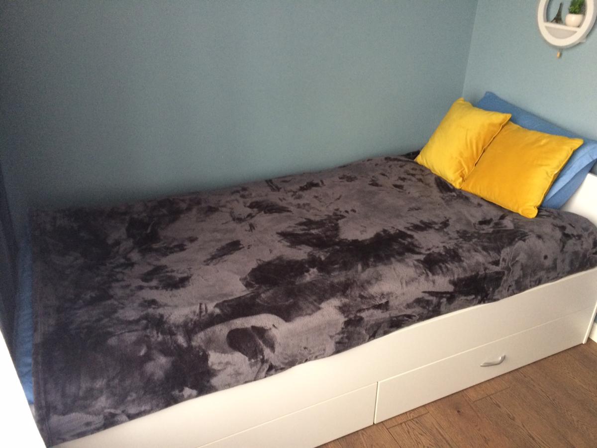 Заказ 00000407640.  Кровать Принт BMS сделали по моему эскизу и с моими размерами (заказывала не стандартную для ребенка с высоким ростом). Долго искала такую возможность за небольшие деньги и нашла только здесь! Рекомендую внимательно читать возможности по заказу - обработка кромки, цвета, ручки - все можно подобрать по своему желанию! А также надо иметь в виду что размер спального места и размер самой кровати - это разные размеры (при заказе все можно обсудить с менеджером).Небольшие минусы (одна кромка внутри была не обработана, но ее почти не видно) и хотелось бы инструкцию по сборке поподробнее  чтобы самим собрать (надо определить порядок сборки, что делать вначале, что потом)  - но в целом все отлично (говорю так потому, что позже имела очень негативный опыт с другими индивидуальными заказами, которые сделала в другой компании), так что BestMebelShop рекомендую однозначно! Ах да, за заказ кровати еще и подарок самим можно выбрать - я выбрала тумбочку - как раз подошла маме!