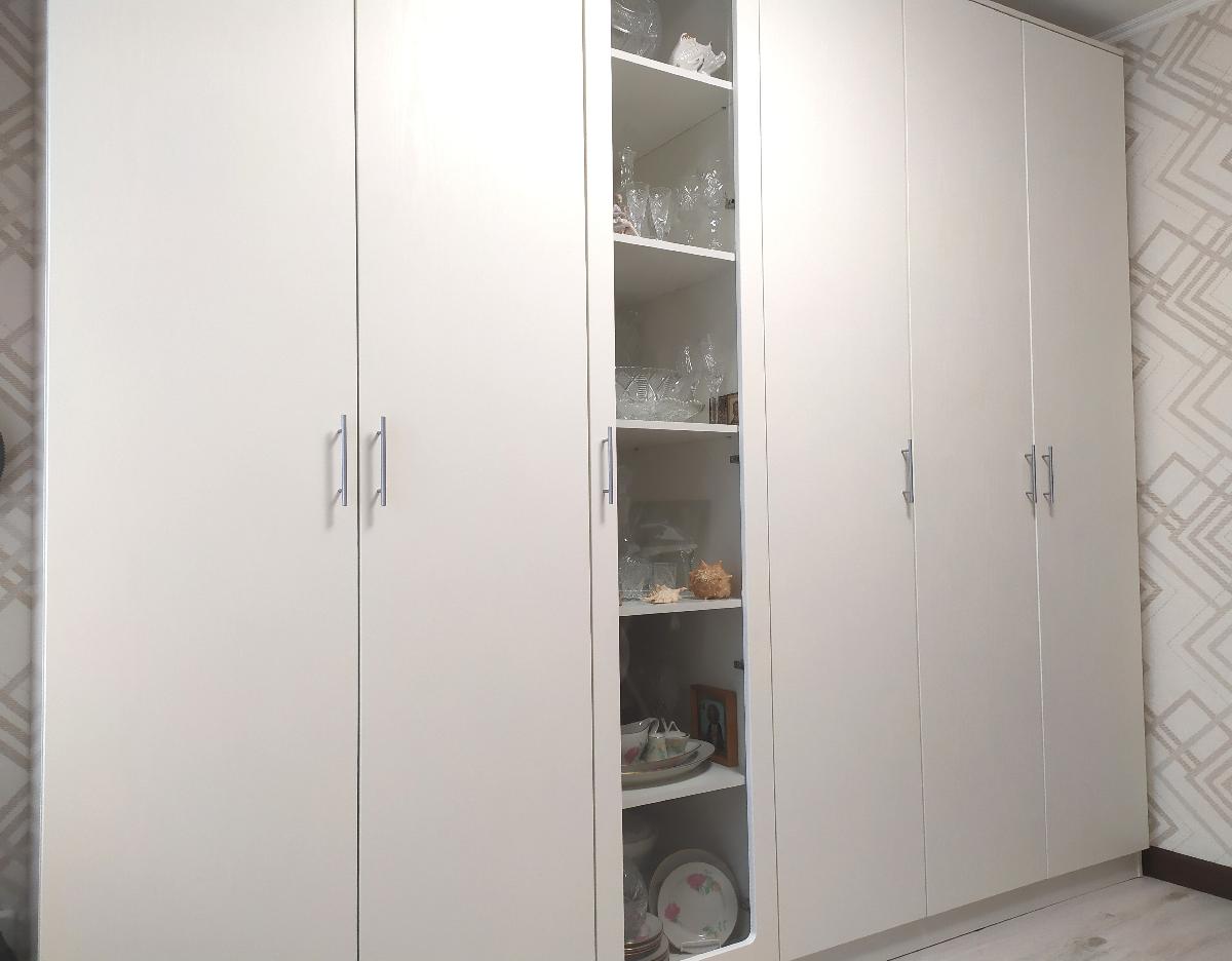 Большой удобный шкаф. Вместительный. Встал полностью от стены до стены. Все механизмы работают. В этой фирме заказываю уже не первый раз. Всё доставляется вовремя. Сборка аккуратная. Сотрудники вежливые. Первый раз заказывала для детского сада. Все документы по СанПИНу предоставили. Второй раз заказывала себе домой.