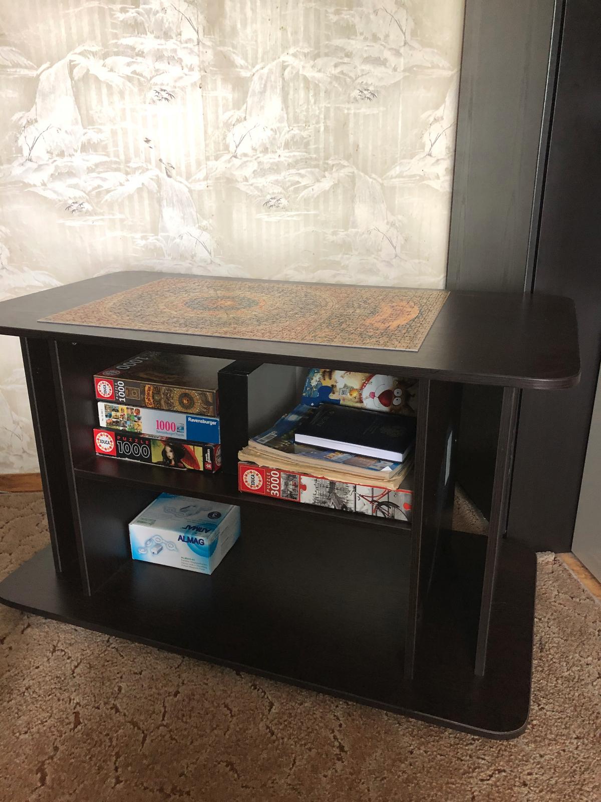 Я обожаю собирать пазлы!Мне было удобно это делать за журнальным столиком!Старый стол давно не соответствовал по размерам в перспективе «покорения» новых удивительных образов!Поэтому давно хотелось приобрести себе нового помощника!Этот стол бесподобен,во всех смыслах этого слова!Он большой!Очень нравятся закругленные края верха и низа!(Исключает вероятность травмирования)!Цвет(темный венге) идеален для мебели в комнате!Все в нем продуманно,в том числе универсальность: две горизонтальные широкие, вместительные полки, два вертикальных проема позволяют размещать        не стандартные картины, журналы...!Легко перемещается на достаточно надежных 5 ножках-колесиках!На нем можно по-быстрому собрать фуршет!!!Красота!Я очень довольна приобретением!Спасибо всем, кто принимал участие в создании этого классного,улобного,практичного журнального стола!!!