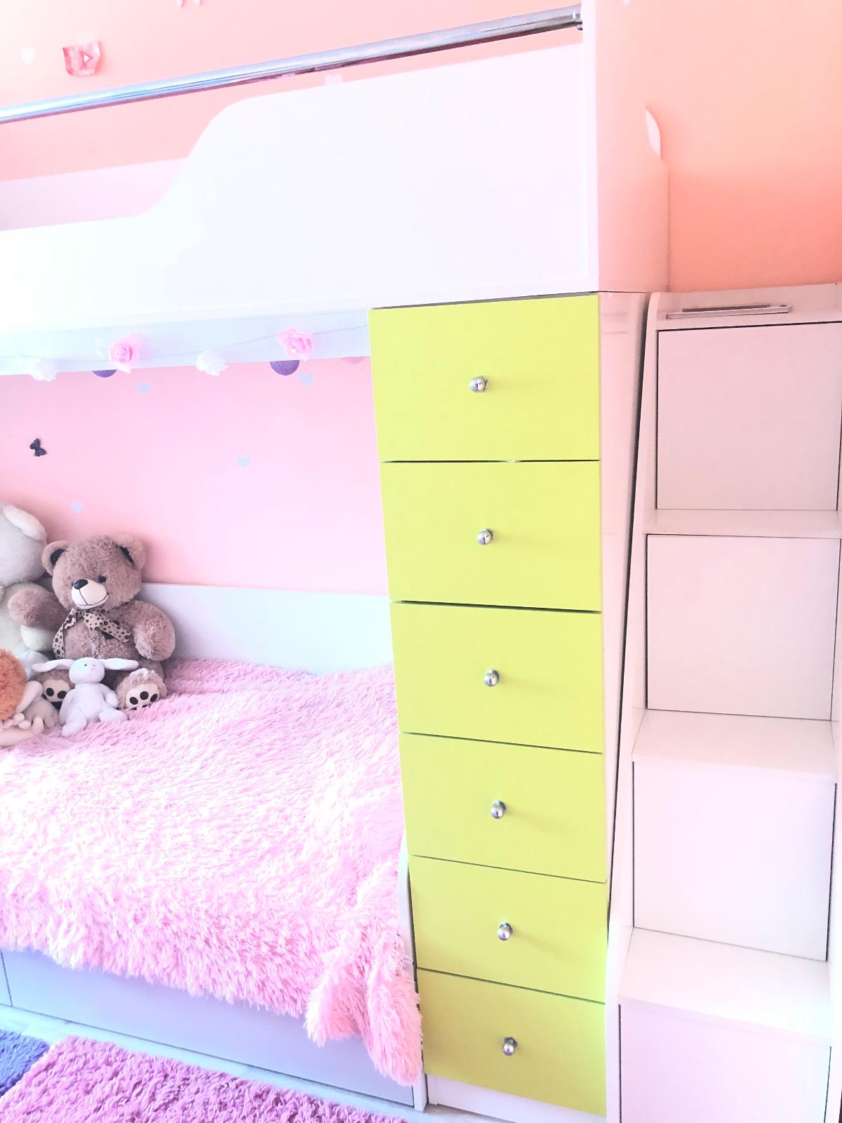 Заказ 00000356343Купили 2-хъярусную кровать для наших девчонок. Качеством очень довольны!!С учетом того, что белое ДСП всегда в сколах, здесь их почти не было. Цвета насыщенные, красивые. Очень понравилось, что bestmebel сделали кроватку именно по нашим размерам, индивидуально, и доплату не взяли за эту услугу. И, конечно, работа компании очень радует, здесь работаю действительно профессионалы! Все четко по срокам, отдельное спасибо доставке. Ребята привезли, занесли в комнату. Все было очень хорошо упаковано и понятно для сборки. Муж с дедушкой смогли сами собрать нашу кроватку-мечты. Второй этаж хорошо укреплён и безопасен для сна, выпасть невозможно. Я иногда сплю вместе с дочкой на втором этаже. Конструкция просто волшебная, очень много ящиков и шкаф. У нас влезли все Игрушки и почти вся Одежда. Немного острые грани у лестницы, но дети привыкли, им не мешает. Мы очень рады, что нашли на просторах интернета эту компанию и такую прекрасную кроватку!! Будем заказывать ещё мебель!