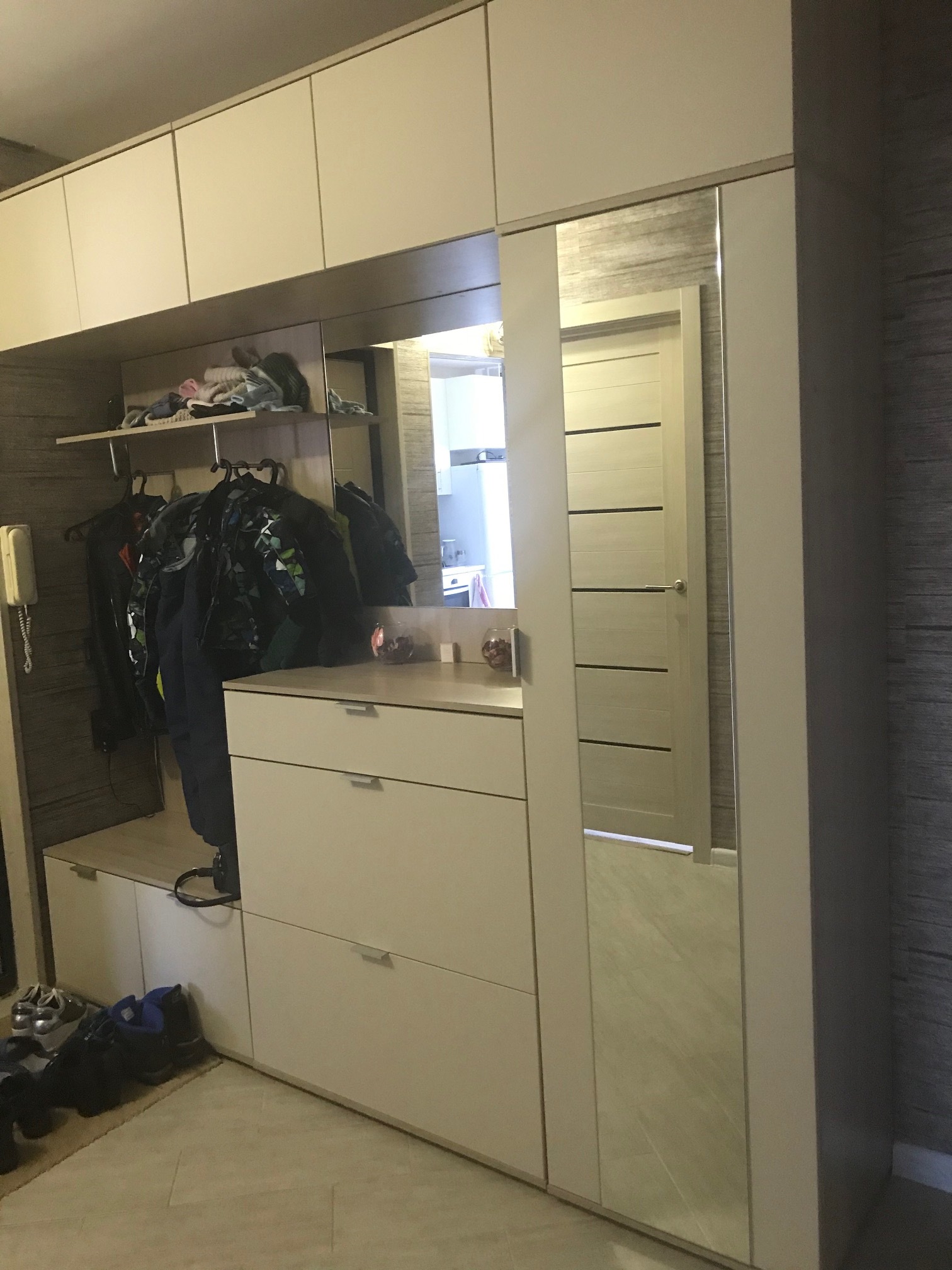Заказывали прихожую по своим размерам (2300*2300*450). Мебель красивая,немного задержали с изготовлением и доставкой мебели.Пришли некоторые детали с дефектами,обещали в течении недели сделать новые. В течении недели все детали были заменены и бесплатно доставлены.