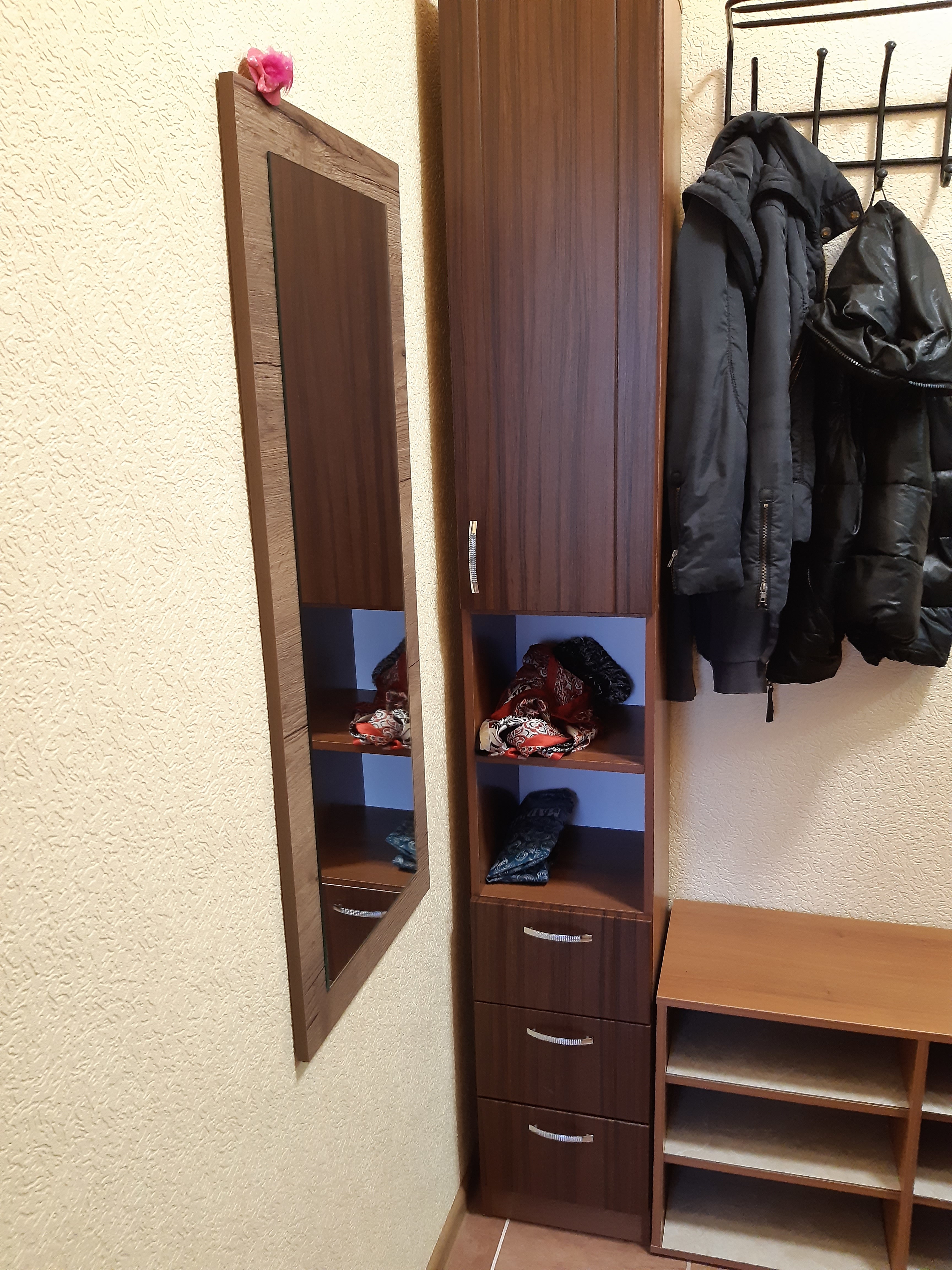 Заказывал в декабре 2019 г. (Заказ № 322648) шкаф в комнату очень хорошо вписался в нашу нишу в стене и гармонично подходит по цвету с соседним шкафом, который также заказывал в вашем магазине. Меня все устроило.