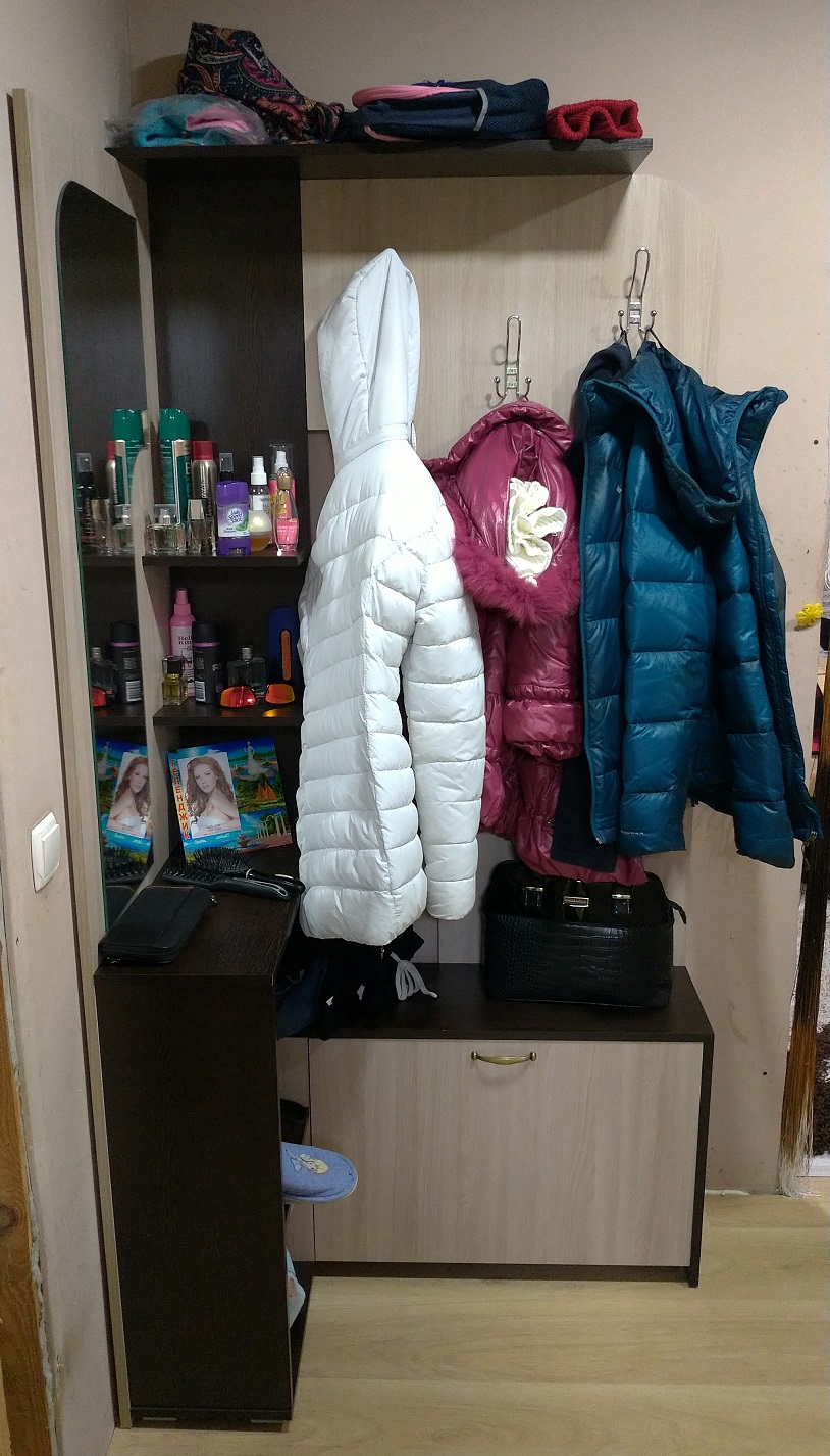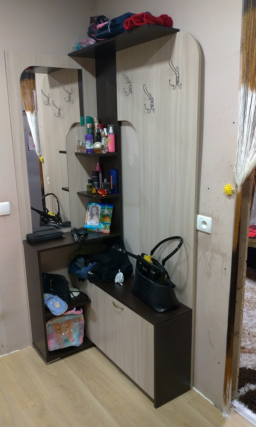 Заказала прихожую через сайт. В магазин не ходила. Удобно. Сотрудники сразу оформили заказ, созвонились. Сообщили приблизительно день доставки и привезли во время. Все детали упакованы хорошо. Собирали сами, брака не было. Отверстия при сборке совпадали. Искали маленькую прихожую за небольшие деньги.Нашли,  да еще можно цвет подобрать! И фурнитуру изменить. Все устроило. Спасибо.Дизайн: хорошоУдобство:хорошоКачество:хорошо