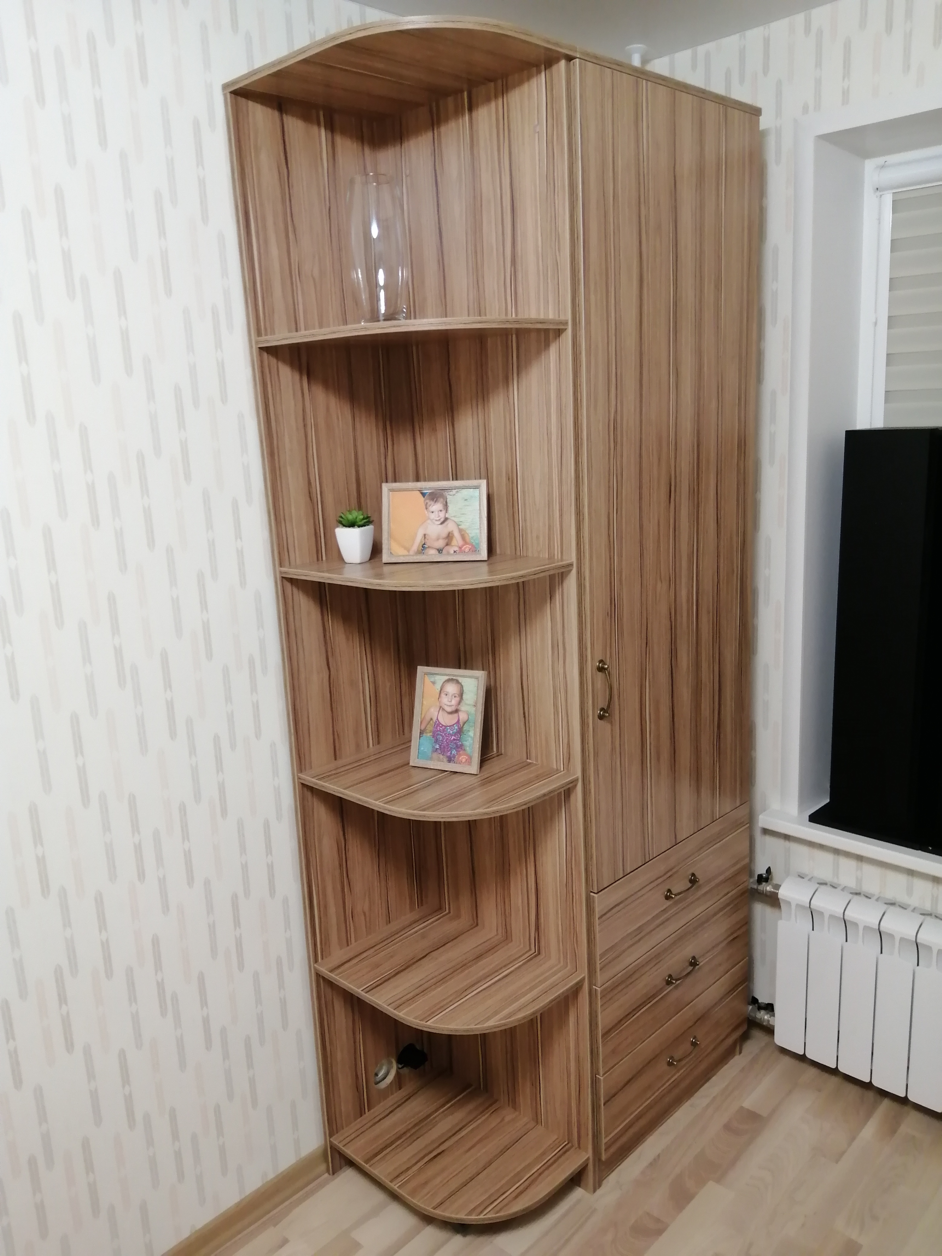 Доброго времени суток.Заказывали шкаф в детскую, мебель в этом магазине покупаем не в первый раз, шкаф покупали для комплекта к столу и стеллажу. БМШ хорош тем, что можно подобрать мебель любого размера, любого наполнения. Шкаф получился отличный, полностью оправдал ожидания. Качество достойное. С магазином приятно иметь дело, доставка вовремя, предварительно уточняют все детали.Два небольших замечания к магазину, которые в целом никак не портят картину: 1. Инструкция. Для тек, кто привык к инструкциям в какой-нибудь икее, инструкция по сборке в БМШ будет легким шоком:) У меня был опыт по сборке шкафов, я справился.2. Подарок. Нам подарили бесплатно полочку и это очень круто! НО, подарок в цвете Венге, а у нас вся мебель в комнате белая. Я просил оператор поменять цвет подарка, но, увы, мне сказали, что это невозможно. Подарок отличный, но, пожалуйста, сделайте небольшую вариативность по цветам, в пределах одной стоимости.